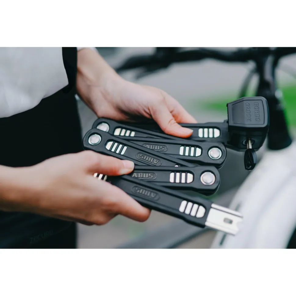 Mit dem Bordo 6200K-Fahrradschloss von Abus schließt Du Dein wertvolles Fahrrad sicher und komfortabel ab. Mit einem Schließumfang von 94 cm findest Du mühelos einen geeigneten Anschlusspunkt, auch bei sperrigen Objekten. Besonders flexibel ist das Schloss durch seinen rotierbaren Schlosskörper, der es Dir ermöglicht, die Öffnung für den Schließstab ganz nach Bedarf auszurichten.Für den Transport lässt sich das Schloss auf eine kompakte Größe zusammenfalten und in der mitgelieferten Schlosshalterung am Fahrradrahmen verstauen. Diese Halterung bietet zudem Platz für Deinen Schlüssel. Beste Sicherheit bieten der ABUS XPlus-Zylinder und die robusten Stäbe aus gehärtetem Stahl, die außerdem mit einer Ummantelung versehen sind, um den Rahmen vor Lackschäden zu schützen. Mit zwei Schlüsseln ausgestattet ist dieses Qualitätsschloss eine ideale Wahl für jeden Radfahrer. Made in Germany!