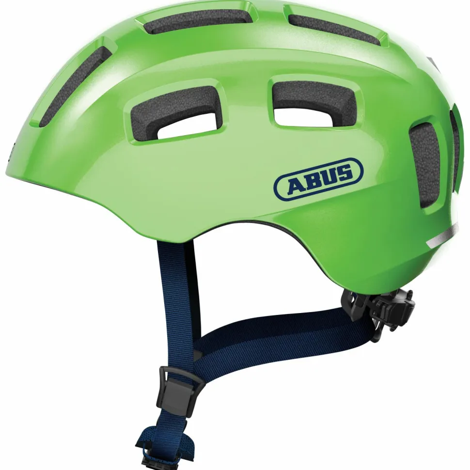 Sportlich-modernes Design, ein schicker Look und verlässlicher Schutz beim Radeln: der Kid’s Youn-I 2.0 von Abus zeigt, was ein Radhelm für coole Kids können muss! Der Helm ist als In-Mold Konstruktion mit einer Polycarbonat-Außenschale und einer EPS-Hartschaum Innenschale gefertigt, bietet optimale Stoßabsorption und ist robust und angenehm leicht. Ein tief nach unten reichender Schläfen- und Nackenbereich und die visierartig nach vorne gezogene Vorderkante sorgen für zusätzliche Protektion. Das fein justierbare Zoom Evo Kids Verstellsystem mit Vollring schafft passgenauen und festen Sitz. Stark reflektierende Elemente und ein LED-Rücklicht erhöhen die Sichtbarkeit und das Ventilationssystem mit integriertem Fliegennetz hält die Köpfe bei angenehmer Temperatur. Tip top!