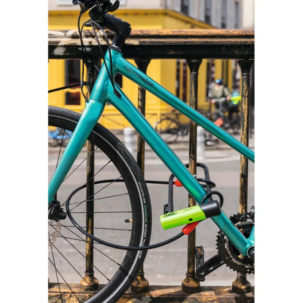 Das Ultra 410K-Fahrradschloss von Abus bietet Dir zuverlässigen Schutz für Dein Fahrrad. Der 12 mm starke gehärtete Stahlbügel sorgt, zusammen mit dem hochwertigen Schließzylinder, für beste Sicherheit, was dem Schloss auch das Testsiegel Sold Secure Silver einbrachte.Das moderne Design und die auffälligen Farben sorgen für gute Sichtbarkeit, während der ergonomische Griff einfaches Handling ermöglicht. Mit der mitgelieferten SH34-Halterung kannst Du das Schloss bequem und klapperfrei an Deinem Zweirad transportieren. In Kombination mit einem Cobra-Kabel kannst Du neben dem Fahrradrahmen auch weitere Komponenten wie Reifen sicher abschließen. Das Ultra 410K ist eine praktische Wahl für jeden Radfahrer.