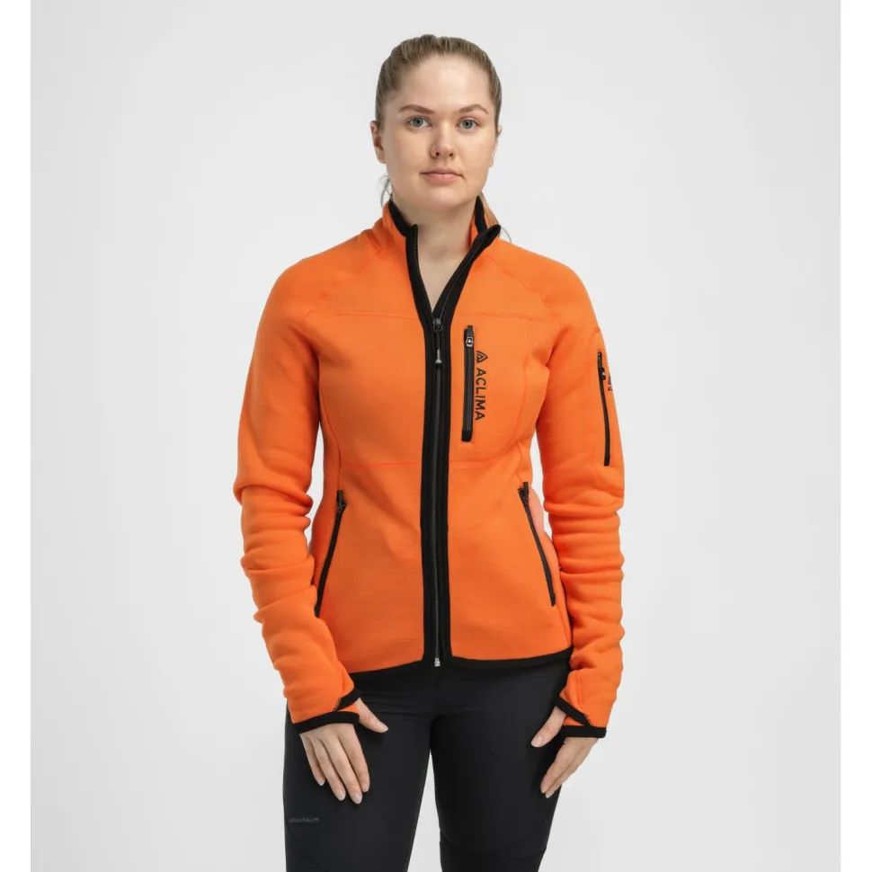 Merinowolle stellt den Hauptbestandteil der Women’s Fleecewool Jacket von Aclima dar und ist ein sehr beliebtes Material in der gesamten Outdoorsport-Branche. Ein nachwachsender Rohstoff, der von Schafen gewonnen wird, die sich an verschiedenste Temperaturen anpassen müssen. So ist die Wolle sehr vielseitig und kommt mit hohen und niedrigen Temperaturen gleichermaßen gut zurecht. Zudem sieht die Wolle schon von weitem nach kuscheligem Wohlfühlen aus. Der Stehkragen der Jacke schützt zudem den empfindlichen Halsbereich, bei niedrigen Temperaturen.