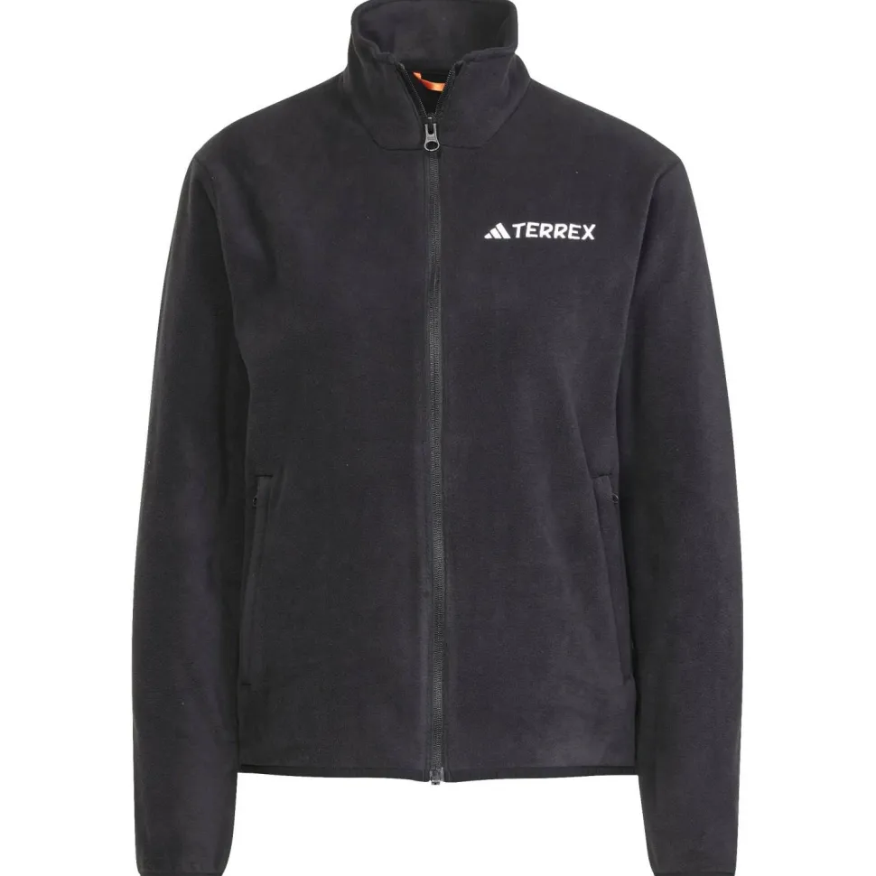 Die adidas Terrex Women’s MT Essentials Full Zip Fleecejacke kombiniert praktisches Design mit stilvollen Details, die Dir auf Deinen Wanderungen zugutekommen. Der durchgehende Front-Reißverschluss ermöglicht ein einfaches An- und Ausziehen, was besonders bei wechselnden Wetterbedingungen nützlich ist. Zwei Fronttaschen bieten Dir ausreichend Platz für kleine Gegenstände wie Schlüssel oder Handy, sodass Du Deine Hände frei hast. Der Stehkragen schützt Deinen Hals vor Wind und Kälte, während die elastischen Ärmelbündchen für einen bequemen Sitz sorgen und das Eindringen von kalter Luft verhindern.