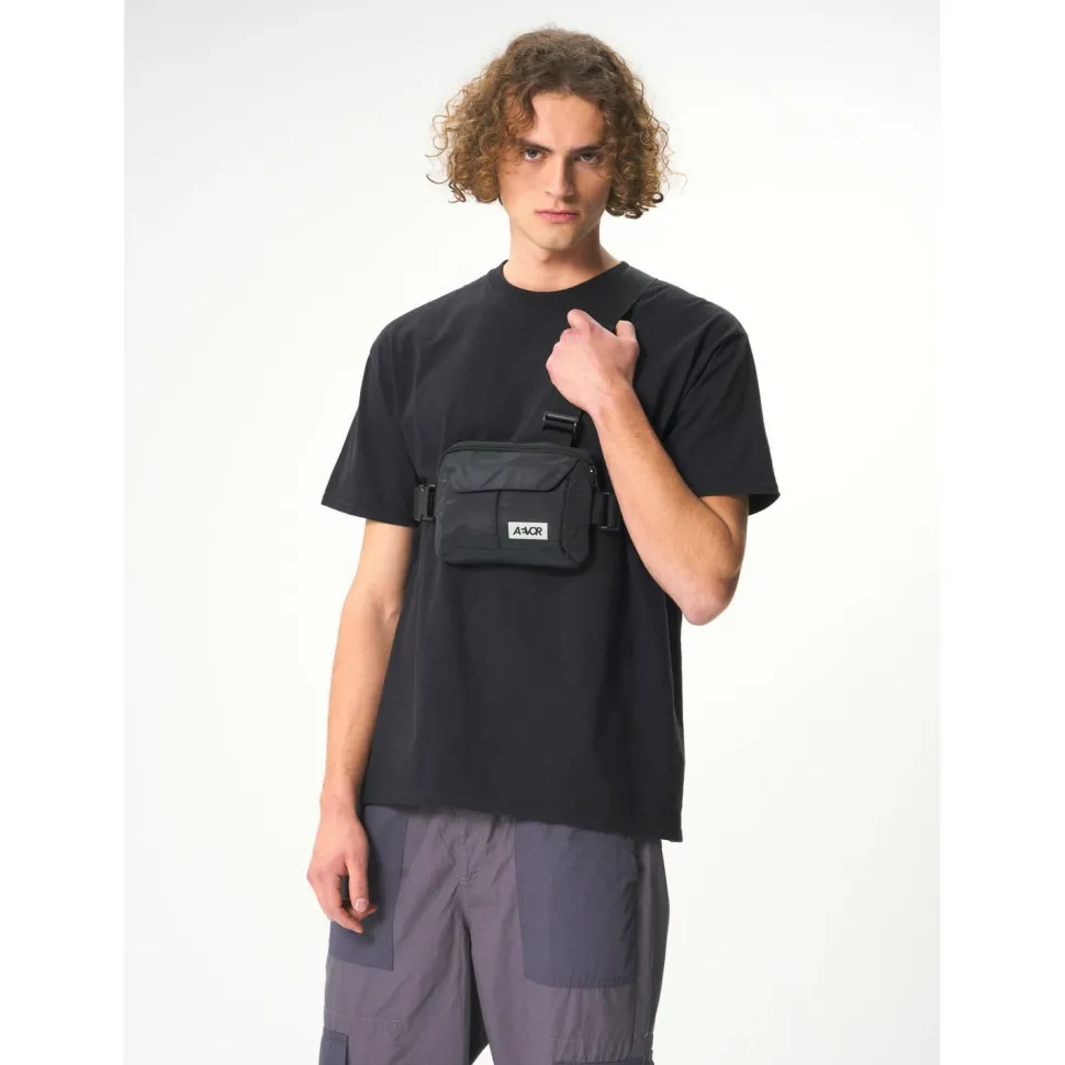 Der Frontpack 1 von AEVOR eignet sich hervorragend für den Alltag und das Reisen. Alle wichtigen Gegenstände, die unterwegs schnell griffbereit sein sollen, finden in der kleinen aber geräumigen Tasche einen sicheren Aufbewahrungsort. Das Besondere ist das Tragesystem, das sich mit drei Gurten über den Rücken schnallen lässt und so sehr bequem und fest sitzt. Mit dem robusten Reißverschluss sind die transportierten Gegenstände sicher verstaut.