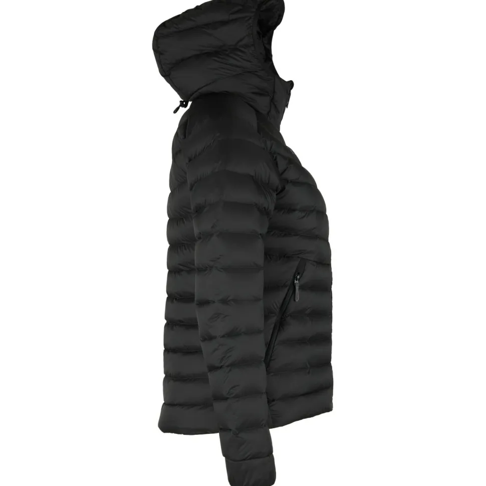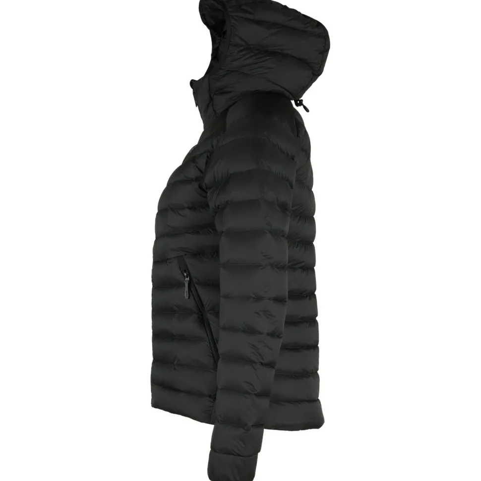 Die Daunenjacke verfügt über zwei hoch angesetzte Fronttaschen und eine extra Innentasche. Elastische Bündchen und ein praktischer Packsack für platzsparenden Transport im Tourengepäck gehören ebenfalls zur Women’s Cerium Hoody Jacke.