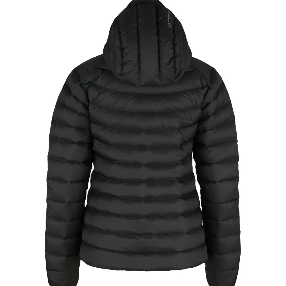 Nur 290g (in Größe S) wiegt die Women’s Cerium Hoody Daunenjacke inklusive warmer Daunenfüllung in Kragen und Kapuze. So bleiben auch Hals und Kopf bestens vor Wind und Kälte geschützt. Arc’teryx setzt bei der Daunenjacke auf sogenanntes Down Composite Mapping und ergänzt die Daunenfüllung mit synthetischen Isolationsfasern. In Verbindung mit einer wasserabweisenden DWR-Behandlung verbessert sich damit der Einsatz bei Nässe und sorgt für eine gezielte Wärmeverteilung.