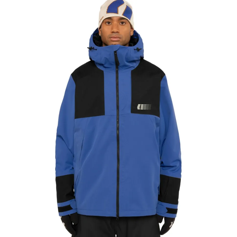 Die Skijacke kommt mit einem zweilagigen, atmungsaktiven Obermaterial, das absolut wasserdicht ist und mit einer PFC-freien DWR sowie versiegelten Nähten für zusätzlichen Nässeschutz aufwartet. Die recycelte Polyfill Kunstfaserisolation sorgt dabei für angenehme Wärme bei frostigen Abfahrten, während die praktische Zip-Unterarmventilation bei Bedarf ein kühlendes Lüftchen durch die Jacke wehen lässt. Die Kapuze kommt mit verstärktem Schirm und ist helmtauglich, die Ärmelbünde sind ebenfalls regulierbar, Schulter- und Unterarmbereich sind zusätzlich gewebeverstärkt und mit Gamaschen ausgestattet und der Schneefang am Saum verhindert, dass das frostige Puder ins Jackeninnere dringt. In Sachen Stauraum gibt’s warm gefütterte Handwärmetaschen, eine interne Medientasche mit Kabeldurchführung sowie eine Skipasstasche. Klasse!