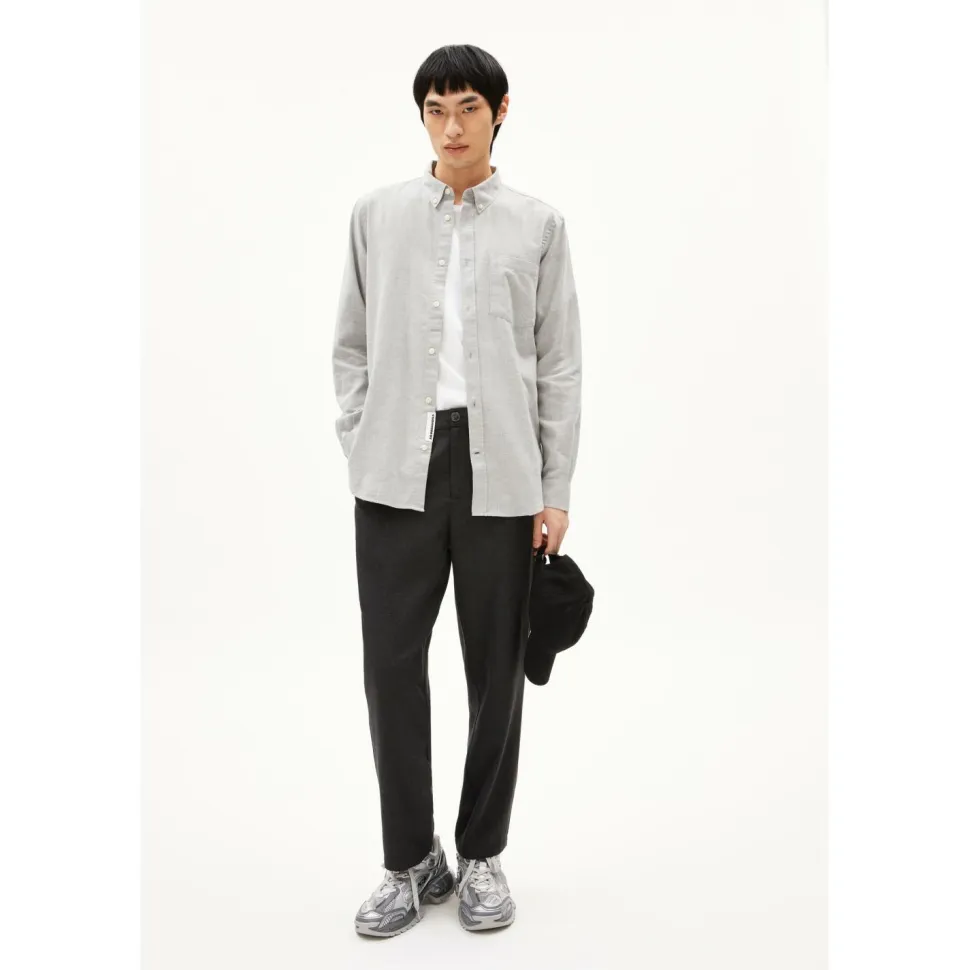Das Langarmhemd Araamo von ARMEDANGELS aus Bio-Baumwolle ist eine solide Wahl für alle, die draußen unterwegs sind und dabei nicht auf Komfort und Umweltbewusstsein verzichten wollen. Der Stoff fühlt sich angenehm weich auf der Haut an und ist gleichzeitig robust.