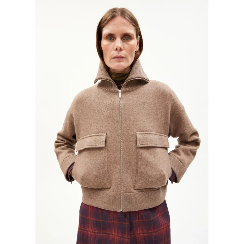 Ein besonderes Design, kombiniert mit nachhaltigen Materialien – die Women’s Joaniaas von ARMEDANGELS. Die schöne Jacke besteht aus einem Materialmix von feinster Bio-Baumwolle von glücklichen Schafen und recycelter Wolle aus Konsum- und Produktionsabfällen. Somit werden Ressourcen geschont und CO2 Emissionen gespart.