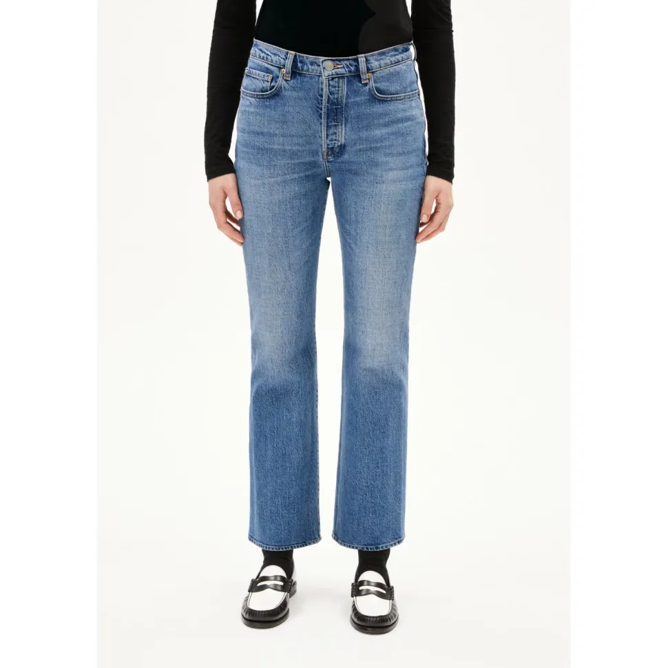 Ein täglicher Liebling – die Women’s Velaari von ARMEDANGELS bietet so viel Bequemlichkeit und Komfort, dass man sie immer tragen möchte. Die Jeans besteht aus nachhaltig hergestellter und recycelter Bio-Baumwolle mit einem Hauch von Elasthan. Der robuste und sehr hochwertige Jeansstoff liegt super weich auf der Haut und sorgt für eine sehr natürliche Bewegungsfreiheit. Mehrere Taschen bieten Platz für Kleinigkeiten und die Gürtelschlaufen ermöglichen es einen Gürtel zu kombinieren. Die Velaari kommt in einem geraden und lockeren Schnitt.