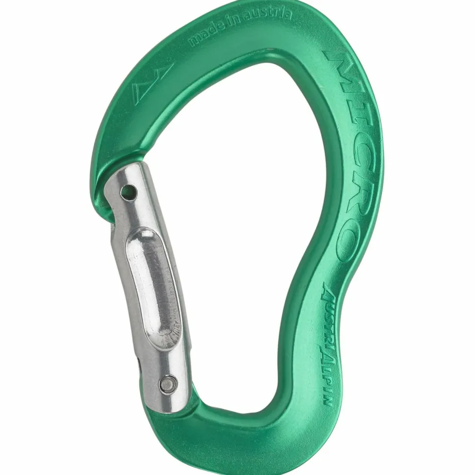 Superleichter Karabiner von AustriAlpin, wahlweise mit geradem oder gebogenem Schnapper. Der Karabiner hat eine besonders große Schnapperöffnung. Das Keylock System ohne Nase verhindert zuverlässig ein Verhaken von Seil oder Gurtschlaufen. Der gerade Schnapper eignet sich vor allem für die Hakenöse, die gebogene Variante eher für das Einhängen des Seils. Den Micro gibt’s in beiden Varianten jeweils poliert oder eloxiert.Made in Tirol: der AustriAlpin Micro wird am Produktionsstandort im Stubaital gefertigt. Das sichert Arbeitsplätze in der Alpenregion und vermeidet lange Transportwege. Die Eloxierungen von Austri Alpin Hardware-Produkten werden unter strengen Umweltauflagen in Österreich durchgeführt.