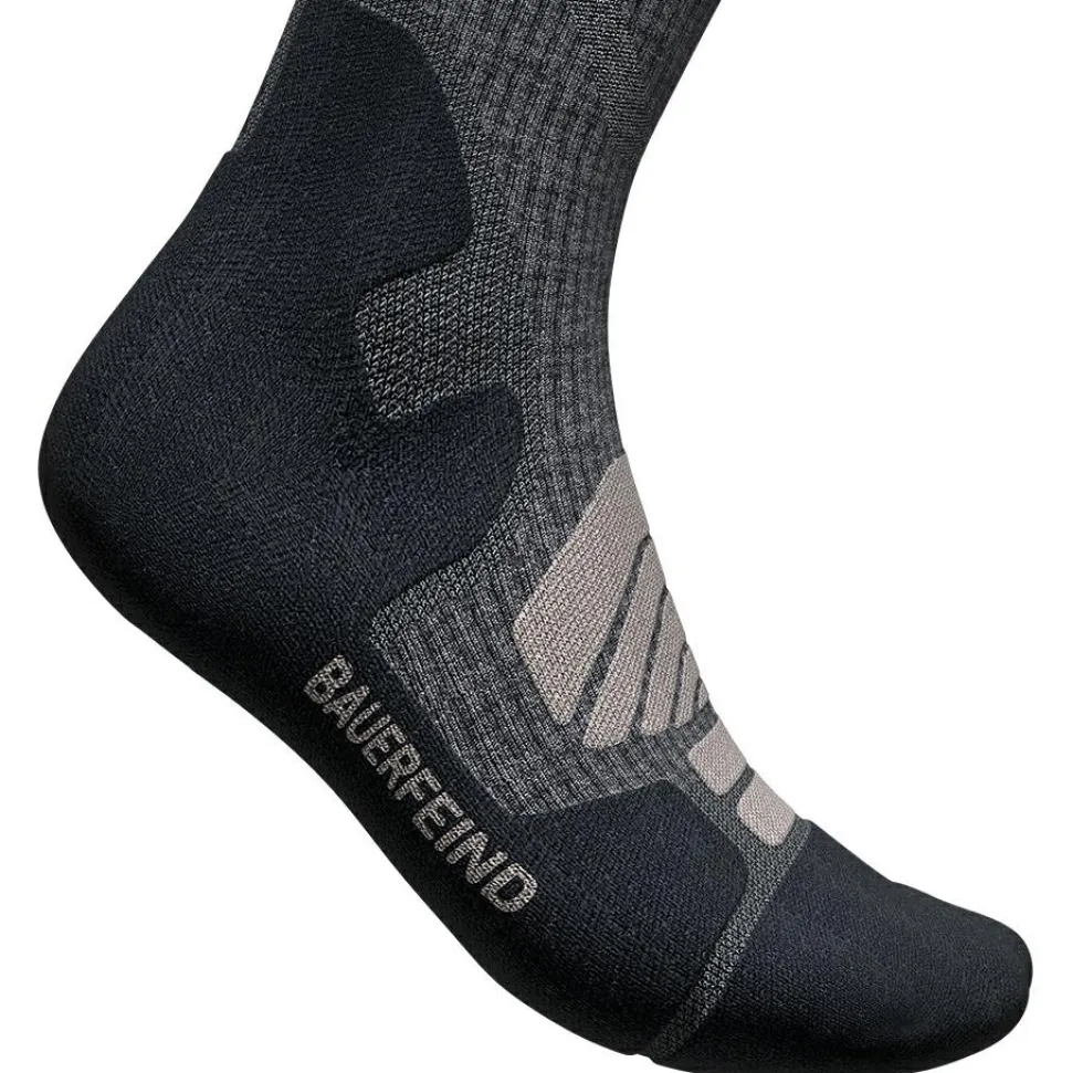 Die Bauerfeind Sports Outdoor Merino Mid Cut Wandersocken sorgen für maximale Performance und zuverlässigen Tragekomfort auf jedem Terrain. Die Infinity Zone unterstützt leicht den Bereich des Sprunggelenks und sorgt für Sicherheit auf jedem Untergrund. Der hohe Anteil an wohltuender Merinowolle bietet hervorragenden Tragekomfort: Die Naturfaser hält die Füße trocken und frisch – ein wahres Naturtalent mit Klimaregulation. Die Komfortzonen Relief Sole, Instep Comfort und Heel Protection schonen die Fußsohle und reduzieren die Druckbelastung auf den Spann und die Ferse beim Aufsetzen und Abrollen des Fußes im Outdoorschuh. Die Aussparung Achilles Comfort reduziert gezielt den Druck auf die Achillessehne.