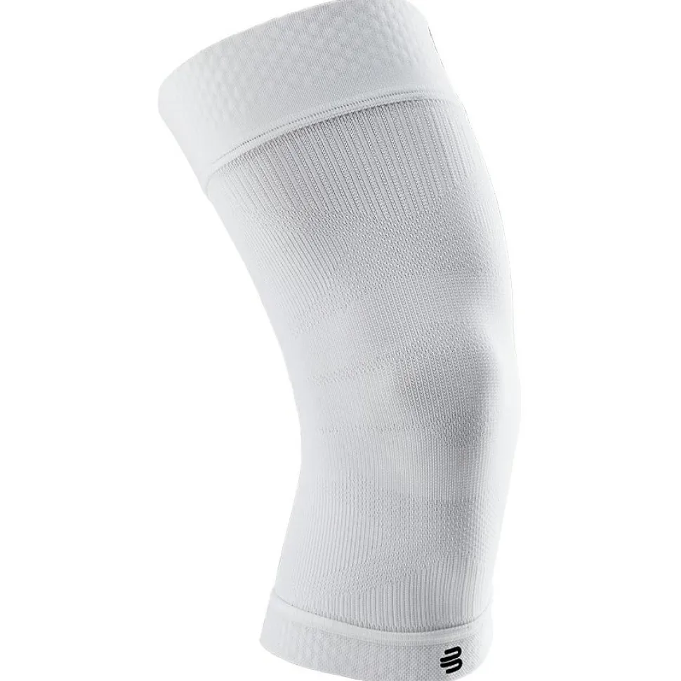 Mit dem Sports Compression Knee Support von Bauerfeind Sports wird die Muskulatur dank Kompressionswirkung im Kniebereich unterstützt. Dabei wird die Blutzirkulation und die Tiefenwahrnehmung im Kniegelenk verbessert. Als optimaler Begleiter beim Sport sorgt das atmungsaktive Hightech-Strickgewebe auch bei warmen Temperaturen für ausreichend Luftzirkulation und ein gutes Feuchtigkeitsmanagement. Mit den Haftzonen unten und oben wird für einen optimalen Sitz ohne Verrutschen gesorgt.