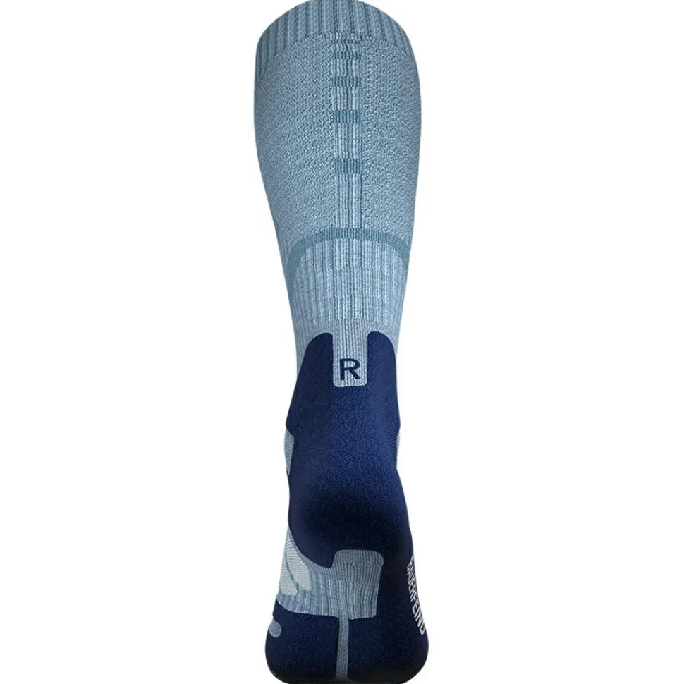 Die Infinity Zone unterstützt leicht den Bereich des Sprunggelenks und sorgt für Sicherheit auf jedem Untergrund. Die Komfortzonen Relief Sole, Instep Comfort und Heel Protection schonen die Fußsohle und reduzieren die Druckbelastung auf den Spann und die Ferse beim Aufsetzen und Abrollen des Fußes im Outdoorschuh. Die Aussparung Achilles Comfort reduziert gezielt den Druck auf die Achillessehne. Die Kompressionsstrümpfe sitzen passgenau auf der Haut und wirken dadurch optimal bei längeren Wanderungen.