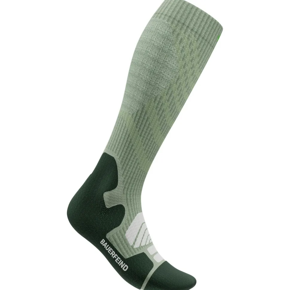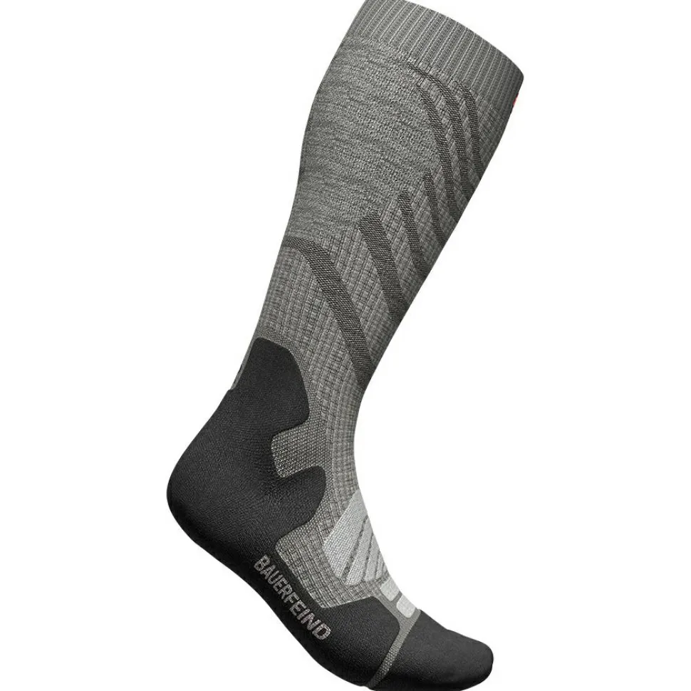 Die Bauerfeind Sports Women’s Outdoor Merino Compression Socks geben durch spezielle Kompressionszonen Power für Wanderungen auf jedem Terrain. Die gezielte Kompression fördert die Durchblutung und verbessert die Muskelökonomie. So ermüden die Waden langsamer und bleiben auf langen Touren leistungsfähiger. Der hohe Anteil an wohltuender Merinowolle bietet hervorragenden Tragekomfort: Die Naturfaser hält die Füße trocken und frisch – ein wahres Naturtalent mit Klimaregulation.