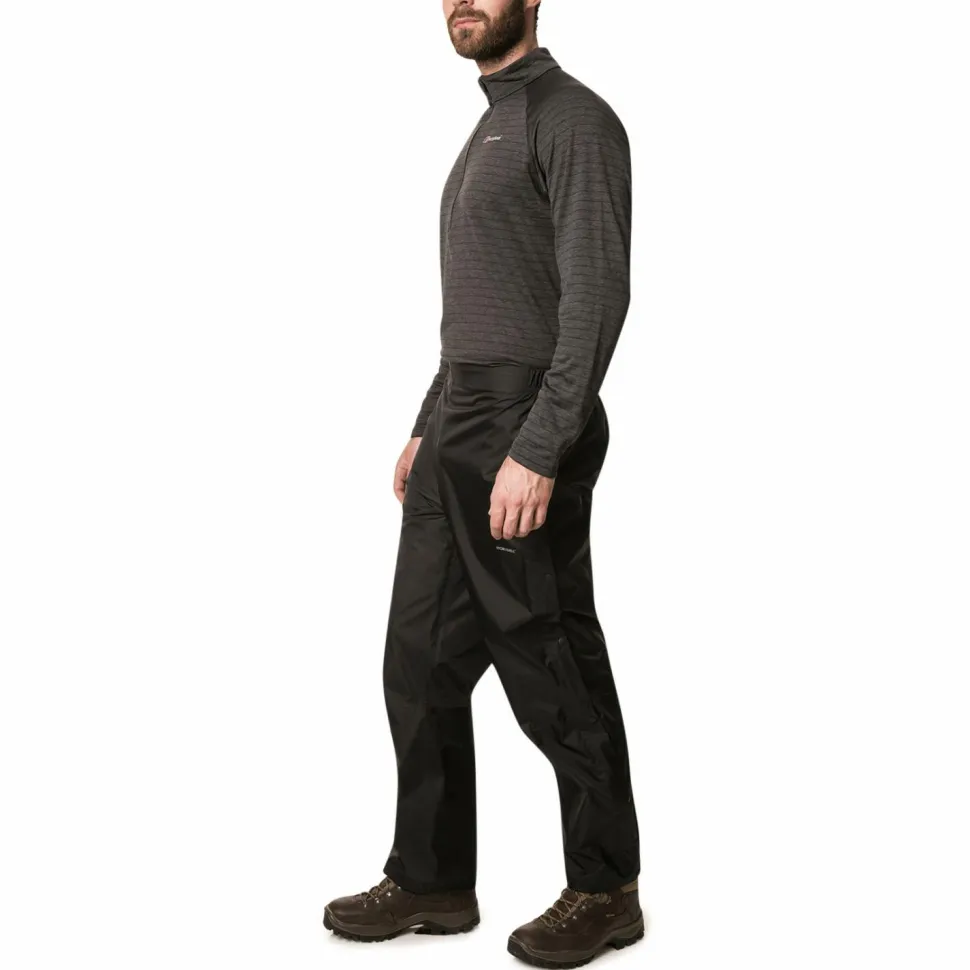 Nasse Tage in der Natur übersteht man mit der Deluge Pro 2.0 Pant von Berghaus ohne Probleme und vor allem ohne nass zu werden. Das robuste Hydroshell Außenmaterial ist absolut wind- und wasserdicht. Keinerlei Feuchtigkeit kann die Hose durchdringen, selbst langanhaltende Niederschläge bringen sie nicht an ihre Grenzen. Damit sich im Inneren kein Schweiß anstaut, ist die Hose zuverlässig atmungsaktiv. So erlebt man einen rundum trockenen Tragekomfort. Damit man die Hose schnell und unkompliziert an- und ausziehen kann sind seitlich Reißverschlüsse angebracht. Gleichzeitig dienen diese auch der Belüftung. Der bequeme Bund ist elastisch und zusätzlich verstellbar, damit weder was rutscht noch was zwickt. Die Kniepartien der Hose sind vorgeformt, so dass eine optimale Bewegungsfreiheit erhalten bleibt und man beim Wandern über Stock und Stein nicht eingeschränkt wird. Mit ihrem geringen Gewicht stört sie in keinem Rucksack und ist ein treuer Begleiter bei wechselhaftem Wetter. Sobald es regnet ist der Wanderer froh, wenn er die Regenhose Deluge Pro zur Hand hat!