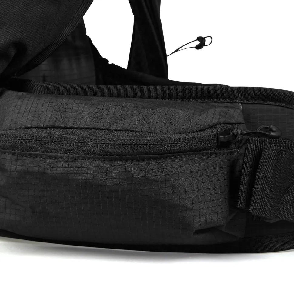 Die strapazierfähige YKK-Reißverschlussöffnung ermöglicht schnellen Zugriff auf Deine Ausrüstung. Zusätzlich gibt es ein elastisches Frontfach, zwei erweiterbare seitliche Flaschenhalterungen sowie zwei Reißverschlusstaschen am Gürtel für noch mehr Stauraum. Komfortabel anzupassen sind die Brust- und Hüftgurte sowie das Kompressionssystem. Der Rucksack ist auch mit einer Trinkblase kompatibel und besteht aus 100 % recyceltem Seawastex®-Material, das aus Abfällen des Ozeans hergestellt wurde.