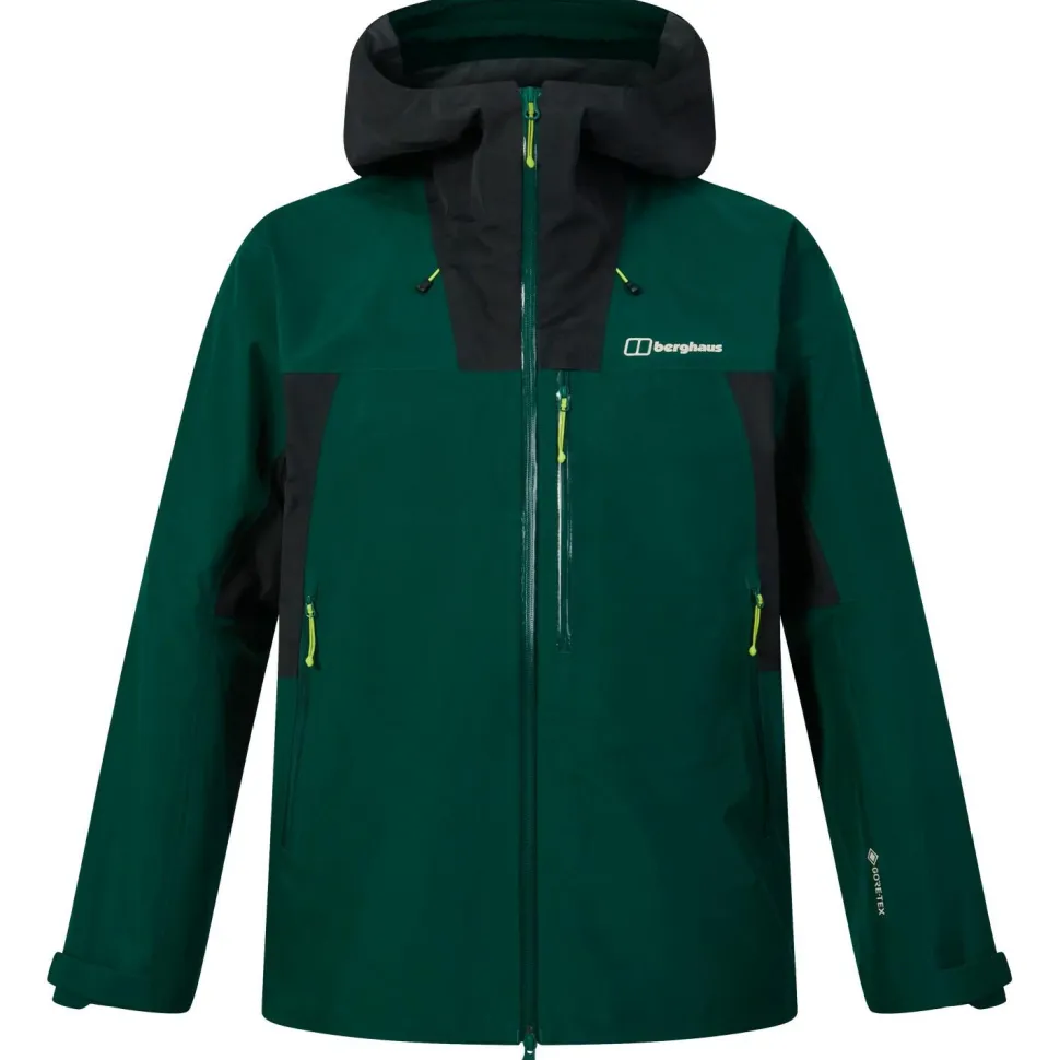 Um Dir die verslustsichere und vor Wasser geschützte Mitnahme wichtiger Kleinigkeiten, die schnell griffbereit sein müssen, zu ermöglichen, haben Berghaus der Ridge-Seeker GTX zwei Front- und eine Brusttasche mit Reißverschluss spendiert, sowie eine zusätzliche Innentasche angebracht. Und wenn der Wind Orkanstärke erreicht, schützt der hoch schließende Stehkragen den Halsbereich zuverlässig. Die Kapuze schließlich ist zweifach verstell- und damit anpassbar; außerdem kannst Du sie auch gut mit einem Helm tragen, falls Du die Jacke zum Biken, Klettern oder beim Klettersteig gehen tragen möchtest.