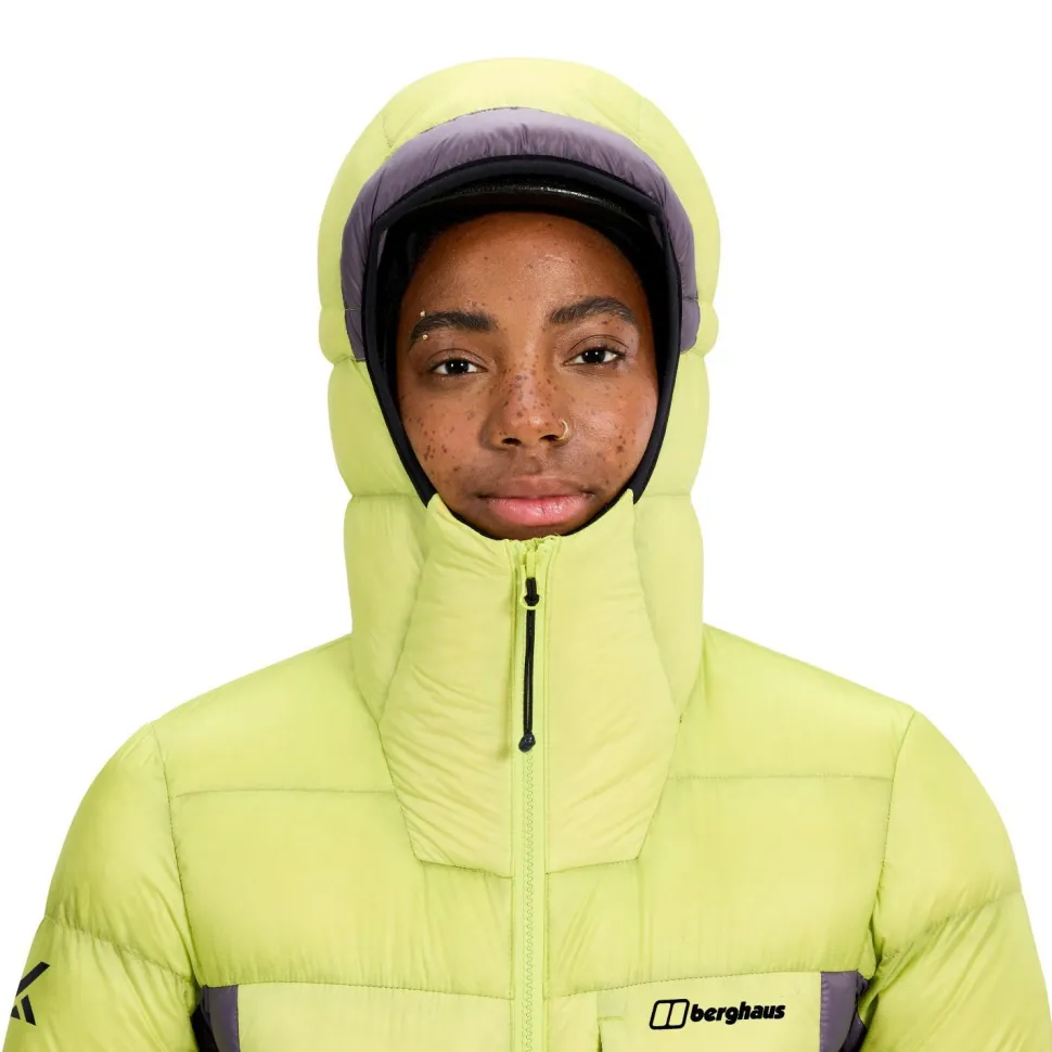 Die Women’s MTN Arete Ultra Down Hoody von Berghaus wurde für anspruchsvolle Bedingungen in den Bergen entwickelt. Mit ihrer hochwertigen RDS-zertifizierten Gänsedaunenfüllung (850 cuin Bauschkraft) bietet sie Dir ein herausragendes Wärme-Gewicht-Verhältnis – ideal für kalte, technische Touren. Die Drei-Zonen-Isolierung sorgt dafür, dass Du genau dort Wärme bekommst, wo Du sie brauchst, ohne dabei an Beweglichkeit zu verlieren. Dank der helmkompatiblen Kapuze mit drahtverstärktem Schirm bleibst Du auch bei schwierigen Kletterpassagen flexibel und geschützt. Reflektierende Details erhöhen Deine Sichtbarkeit bei schlechten Lichtverhältnissen.