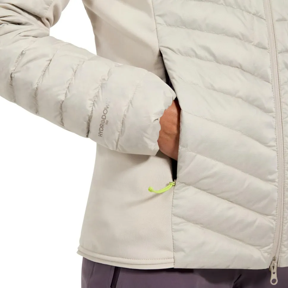 Die Women’s Tephra Stretch Reflect 2.0 Hoody von Berghaus kombiniert leistungsstarke Isolation mit durchdachter Bewegungsfreiheit. Die 700er Hydrodown®-Füllung hält Dich auch bei feuchtem Wetter zuverlässig warm, während die Reflect-Technologie Deine Körperwärme effizient zurückstrahlt. Das leichte Pertex® Quantum-Obermaterial schützt Dich vor Wind und leichtem Regen, ohne Dich zu beschweren. Mit einem Gewicht von nur 388 Gramm (Größe M) und einer Rückenlänge von 67 cm ist die Jacke ideal für aktive Tage in den Bergen oder in der Stadt.