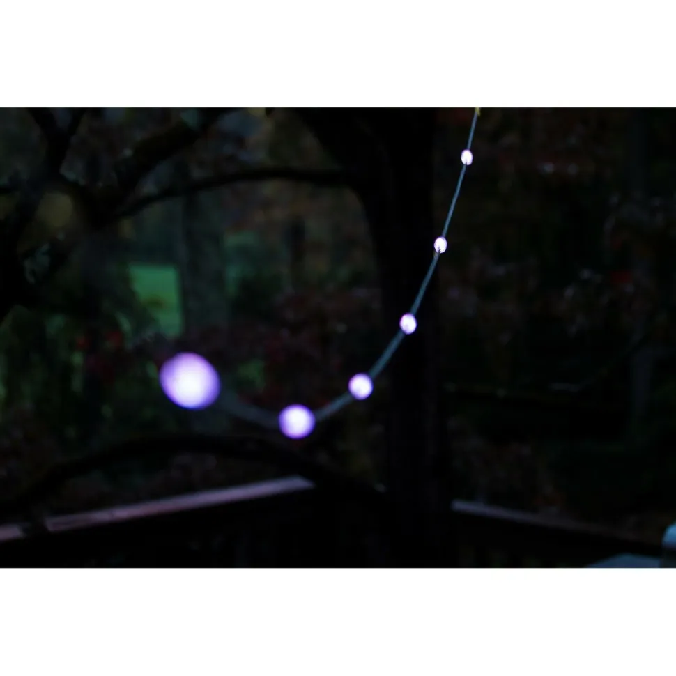 Die Lichter sind nicht nur farbenfroh, sondern auch extrem robust. Die bruchsicheren Birnen sind wetterfest und halten den Herausforderungen des Outdoor-Lebens stand. Egal ob Regen, Wind oder Sonnenschein – Deine Beleuchtung bleibt zuverlässig und langlebig. Die Lichter können bis zu 40 Stunden im weißen Modus und 26 Stunden im Farbmodus leuchten, sodass Du lange Freude an Deiner Beleuchtung hast.