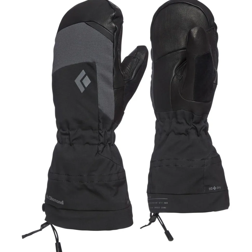 Verlässlich warm, extra robust und trotzdem Feingefühl: die Mercury Mitts Fäustlinge von Black Diamond! Die alpinen Allround-Handschuhe sind eine gute Wahl für den ganzjährigen Einsatz. Ihr Außenhandschuh kombiniert ein wasserdichtes BD.dry-Laminat mit der Empel DWR-Behandlung auf dem Handrücken. Hinzu kommen ein Vierwege-Stretchmaterial und eine lange Manschette, die Schutz vor eindringender Feuchtigkeit bietet. Die Handfläche aus Ziegenleder mit zusätzlich verstärkender Gewebeschicht hält dem Einsatz im alpinen Gelände mit intensivem Seilhandling problemlos stand.