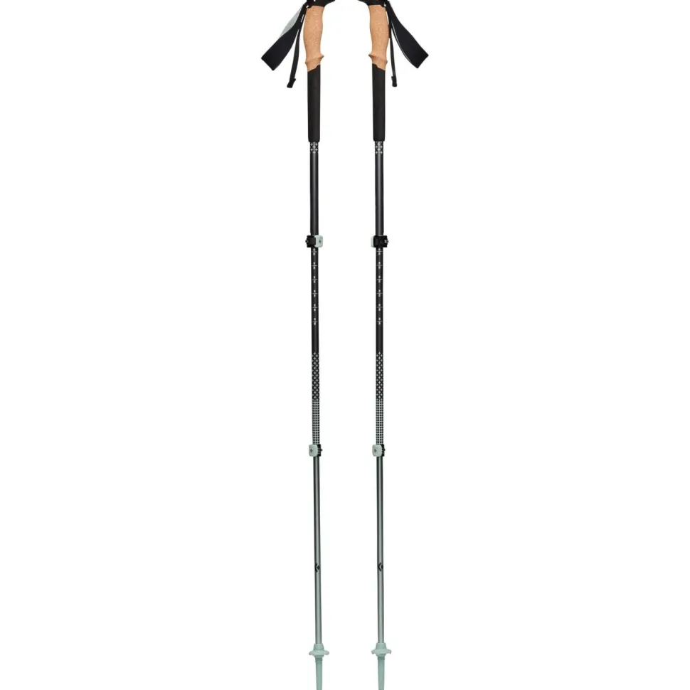 Der Pursuit von Black Diamond ist ein Trekkingstock, der Dich bei Ausflügen in alpines Gelände begleitet und Dir das Vorwärtskommen erleichtert. Die ergonomischen Griffe sorgen für eine bequeme Handposition und wirken der Ermüdung entgegen, und durch die Wahl von Naturkork als Griffmaterial auch eine sehr angenehme Haptik aufweist. Der Kork ist außerdem feuchtigkeitsregulierend, was die Haut der Hände zu erfreuen weiß. Die Verlängerung des Griffes besteht aus Bloom, einem Schaumstoff auf Algenbasis, der sich erstens ebenfalls sehr angenehm anfasst, und darüber hinaus bei steilen Anstiegen zusätzliche, alternative Handpositionen ermöglicht.