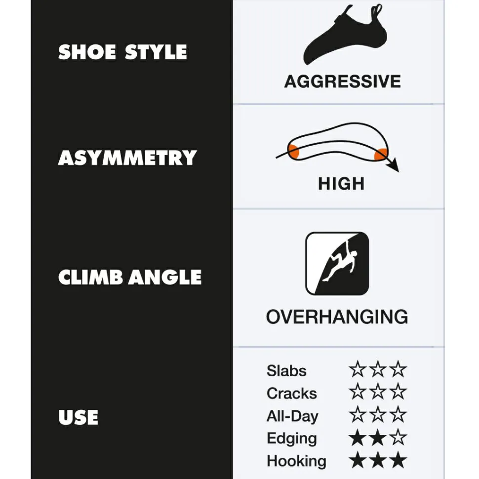 Das strapazierfähige Mikrofaser-Material schafft zusammen mit der atmungsaktiven Zunge einen richtigen Performance-Schuh für hohe Schwierigkeitsgrade. Vor allem die minimalistische Sohlenmitte sorgt für Sensibilität in steilen Routen. Die Kombination aus aufgebrachtem Gummi sowie Gummiformteilen verspricht darüber hinaus maximale Strapazierfähigkeit für höchste Ansprüche. Das macht den Shadow unterm Strich zur Geheimwaffe, mit der Black Diamond vor allem leistungsorientierte Kletterer und Profis anspricht, die in Sachen Performance keinerlei Kompromisse eingehen wollen.
