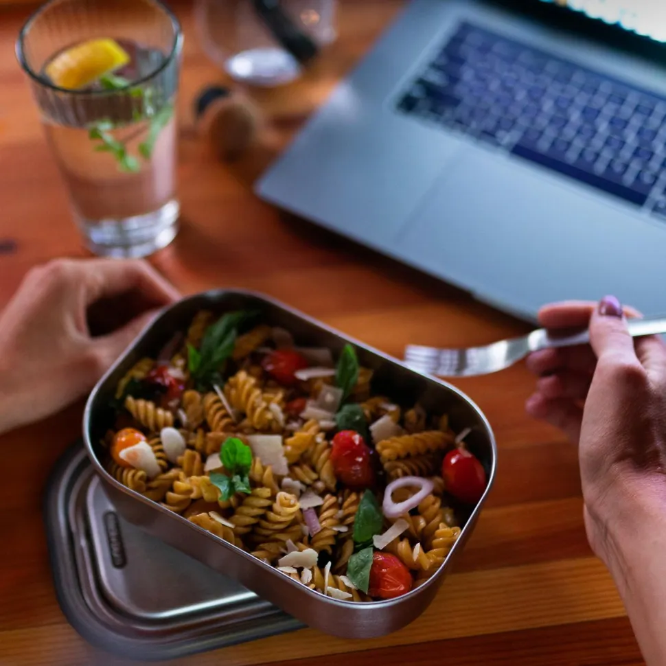 Die Edelstahl Lunchbox von black+blum ist mit ihren Maßen der perfekte Begleiter für Deine Outdoor-Abenteuer. Egal, ob Du beim Camping, Wandern oder auf Reisen bist, diese kompakte Box passt problemlos in Deinen Rucksack oder Deine Tasche. So hast Du immer eine leckere Mahlzeit dabei, sei es für ein Picknick im Grünen oder das Mittagessen im Büro. Die durchdachte Größe zeigt, dass black+blum’s Motto „Buy once, buy well“ hier voll zur Geltung kommt.