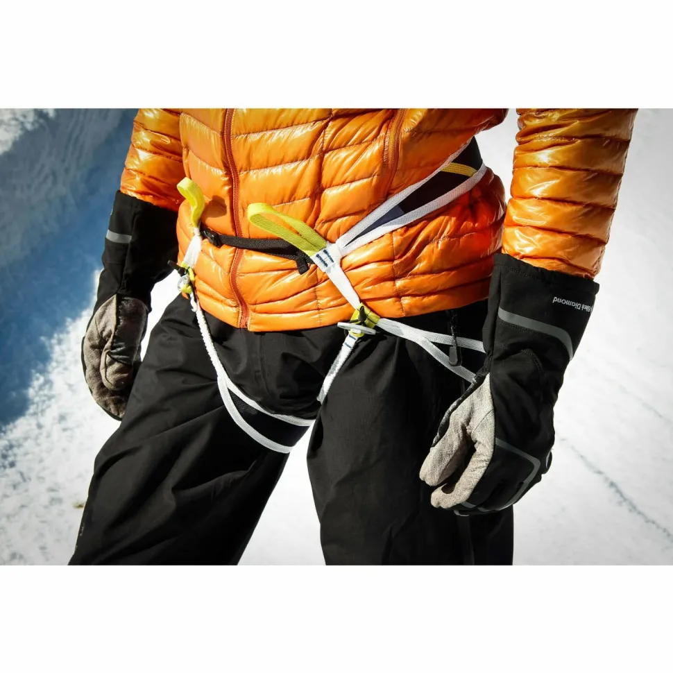 Der Choucas Light Harness von Blue Ice ist so leicht und klein verpackbar, dass man ihn in der Jackentasche mitnehmen kann auf Tour. Dabei erfüllt er die Sicherheitsanforderungen und hat sogar elastische Beinschlaufen, die man öffnen kann. Das heißt, dass man den Gurt auch mit Steigeisen oder Skis anlegen kann, ohne aus der Bindung aussteigen zu müssen. Das ist sehr praktisch, wenn bei Skitourenrennen wie der Patrouille des Glaciers die Mitnahme eines Gurtes vorgeschrieben ist, aber jedes Gramm zuviel und jede Minute Zeitverlust beim An- und Ablegen des Gurtes zählt.