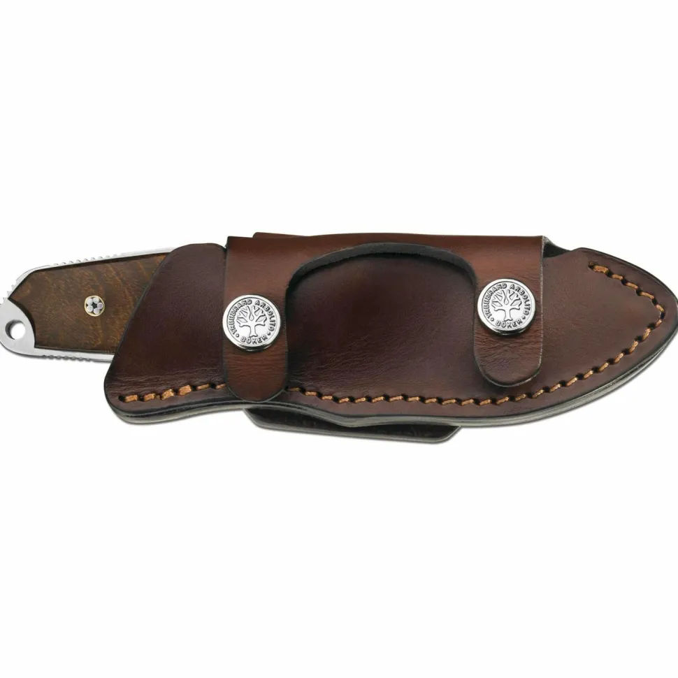 In der mitgelieferten Lederscheide kann das Messer am Gürtel getragen werden.