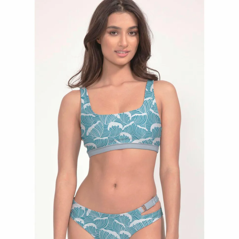Von der Auswahl der Materialien bis zum Ritt auf der Welle wird bei boochen auf Nachhaltigkeit geachtet, das Bikini-Top besteht komplett aus recyceltem Polyester.