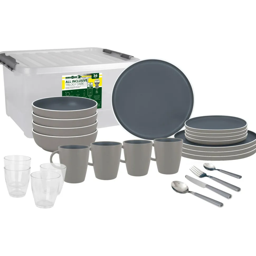 Das All Inclusive Trilogy Grey von Brunner ist ein elegantes Camping-Geschirrset für vier Personen, das Stil und Funktion perfekt verbindet. Die raffinierte Farbkombination aus drei Grautönen sorgt für ein harmonisches Gesamtbild – von Tellern über Becher bis hin zu Besteck und Gläsern.