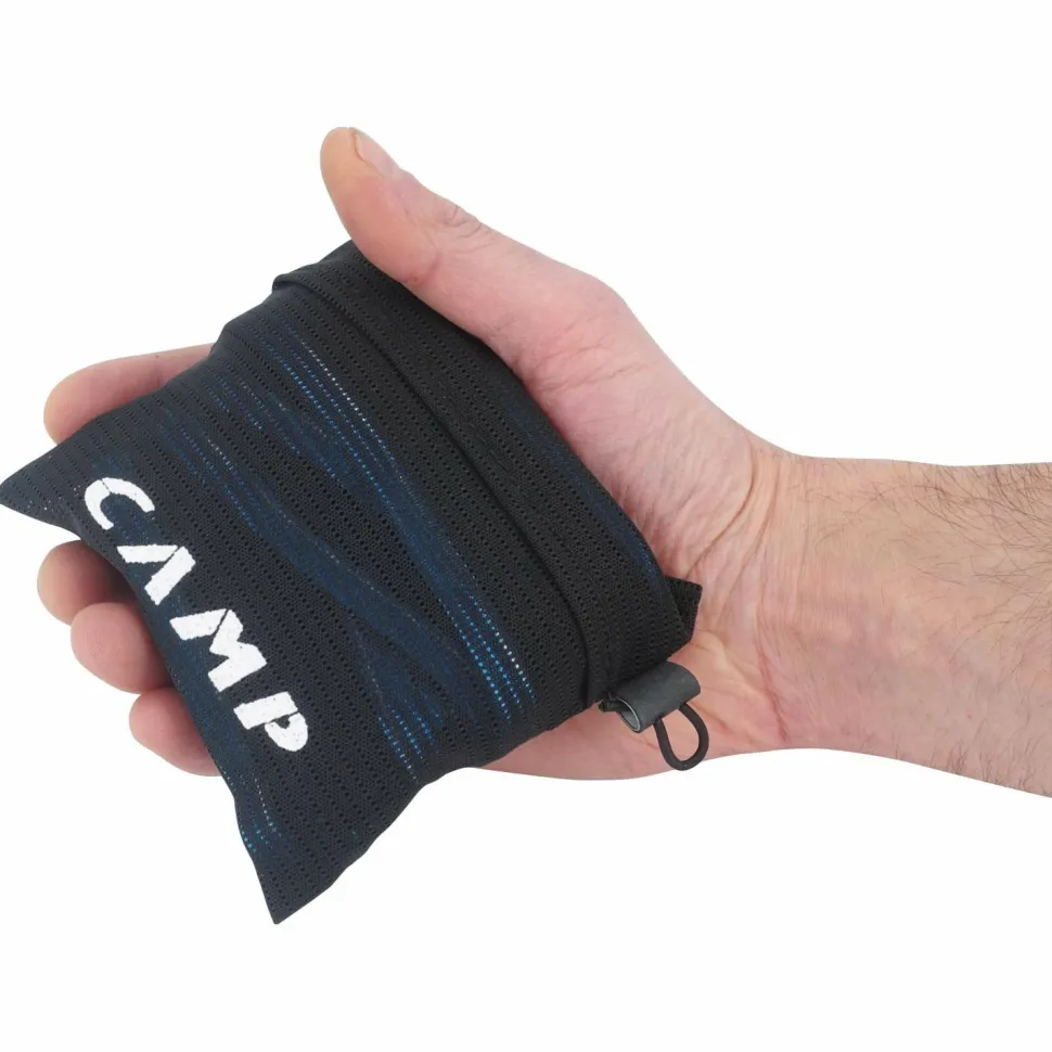 Federleichter Klettergurt für Skitourengeher: der Alp CR Klettergurt von Camp! Der ultraleichte Gurt wiegt unter 100 Gramm und ist dennoch strapazierfähig und angenehm atmungsaktiv. Die Beinschlaufen lassen sich über Aluminiumschnallen verstellen und der Hüftgurt ist über elastische Kordeln passgenau regulierbar! Eine Befestigungsmöglichkeit für Eiclipper gibt es über die strapazierfähigen Hypalon Materialschlaufen. Durch das einfache Handling lässt sich der Gurt an- und ausziehen, ohne dabei die Ski oder Steigeisen ausziehen zu müssen! Im mitgelieferten Packsack lässt sich der Klettergurt griffbereit und klein verstauen.