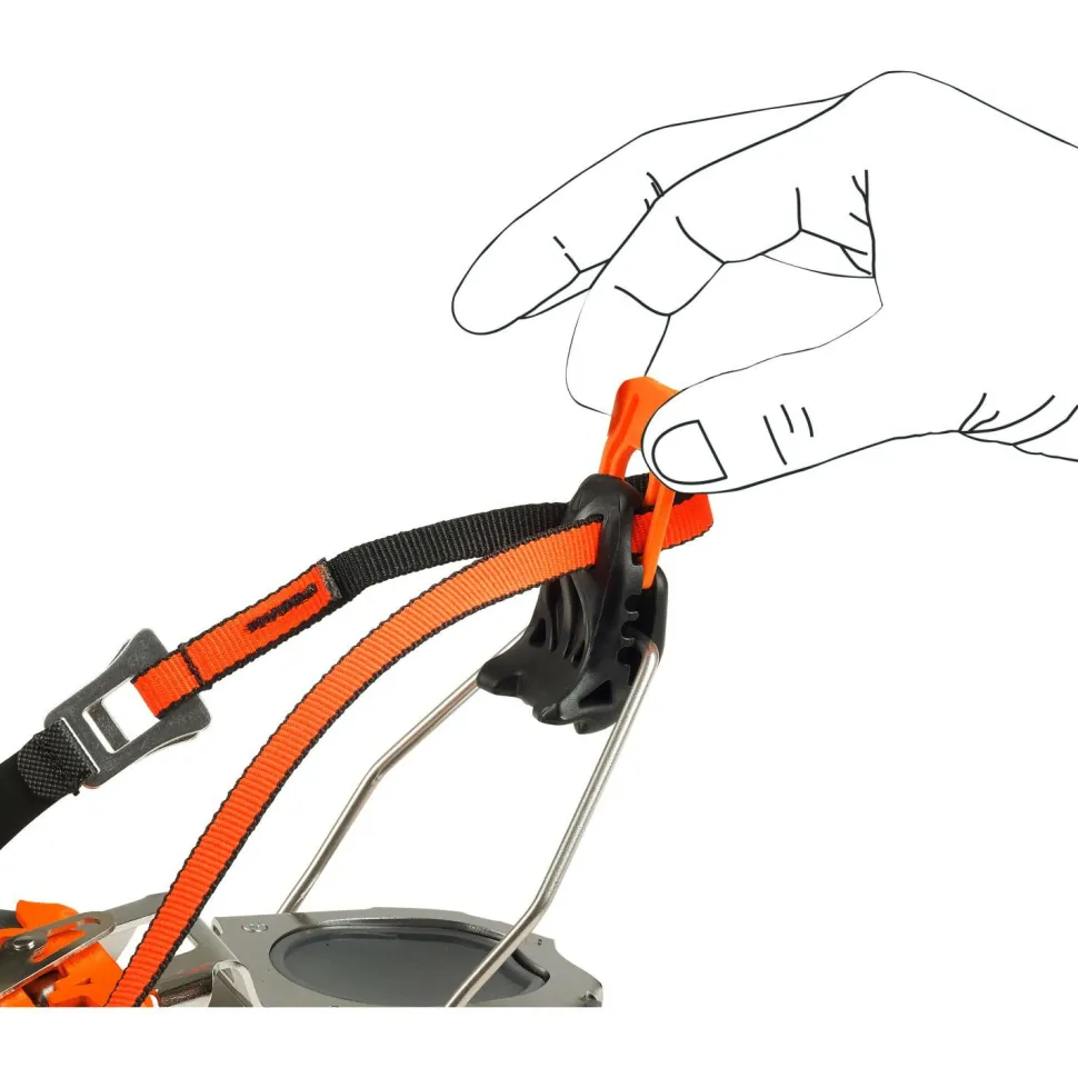 Der hintere Teil der Steigeisen garantiert eine höhere Leichtigkeit und Flexibilität in der Gerätelänge für eine perfekte Anpassung an alle Sohlen. Auch der Übergang zur Doppelzackenkonfiguration oder die Auswechslung der Eiszacken durch Hartschneezacken ist einfach und schnell. Das asymmetrische Design der Blade Runner, und insbesondere das Design des vorderen Teils garantieren exzellente Leistungen bei jeglicher Art von Schuhen und Verstellung. Echte Hochleistungssteigeisen von C.A.M.P.!