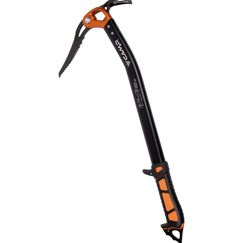 Die Krümmung des Schafts aus Aluminium wurde dazu konzipiert, sowohl einen wirksamen Anschlag als auch ein exzellentes Eindringen in den Schnee zu gewährleisten, wenn der Pickel senkrecht aufgelegt wird. Die im Kopf einhängbare Öffnung ermöglicht den Einsatz einer Handschlaufe, während in die Öffnung der Spitze eine Leash eingehängt werden kann. Der Kopf des Eisgeräts mit Schaufel und Hammer bietet eine äußerst ergonomische Griffigkeit und beschädigt die Handschuhe nicht, da es in Schaftnähe keine Zähne gibt.