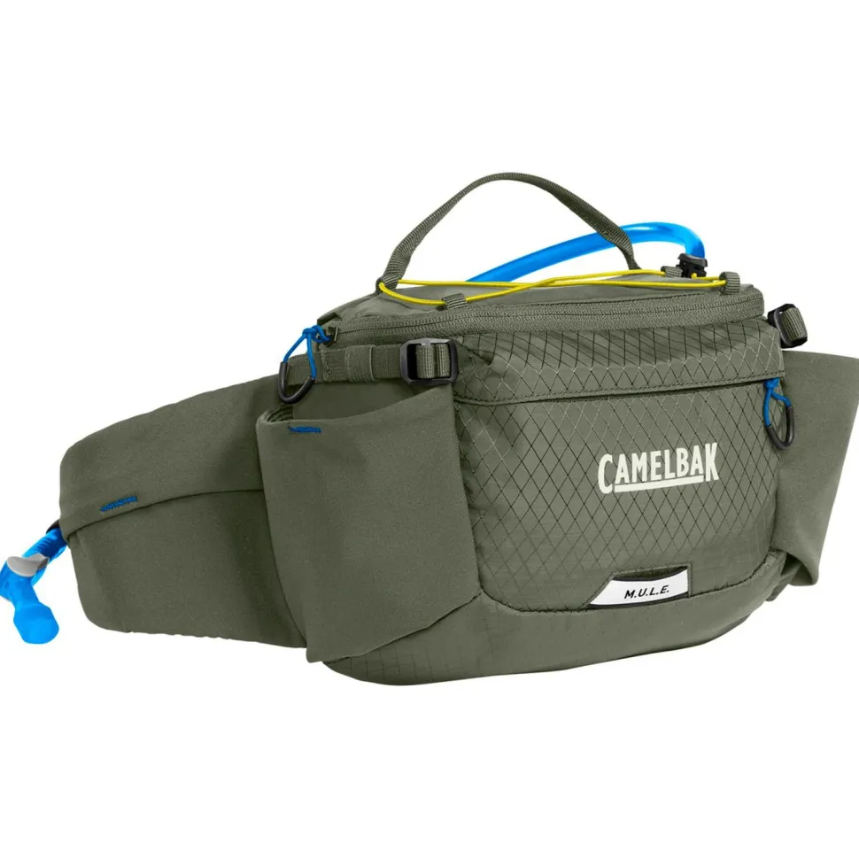 Die Gürteltasche M.U.L.E. 5 von Camelbak ist speziell für Mountainbiker entwickelt. Sie besteht aus einem robusten und reißfesten Material und dient in erster Linie dem Transport von Flüssigkeit und kleineren Ausrüstungsgegenständen. Zwei Flaschenhalter und ein maximales Packvolumen von vier Litern machen die Tasche zu einer praktischen Begleiterin auf allen Trails. Der Hüftgurt lässt sich leicht in die optimale Passform bringen. Er passt zu Hüftumfängen von 77 cm bis 132 cm. Reflektierende Elemente erhöhen zudem die Sichtbarkeit im Dunkeln.