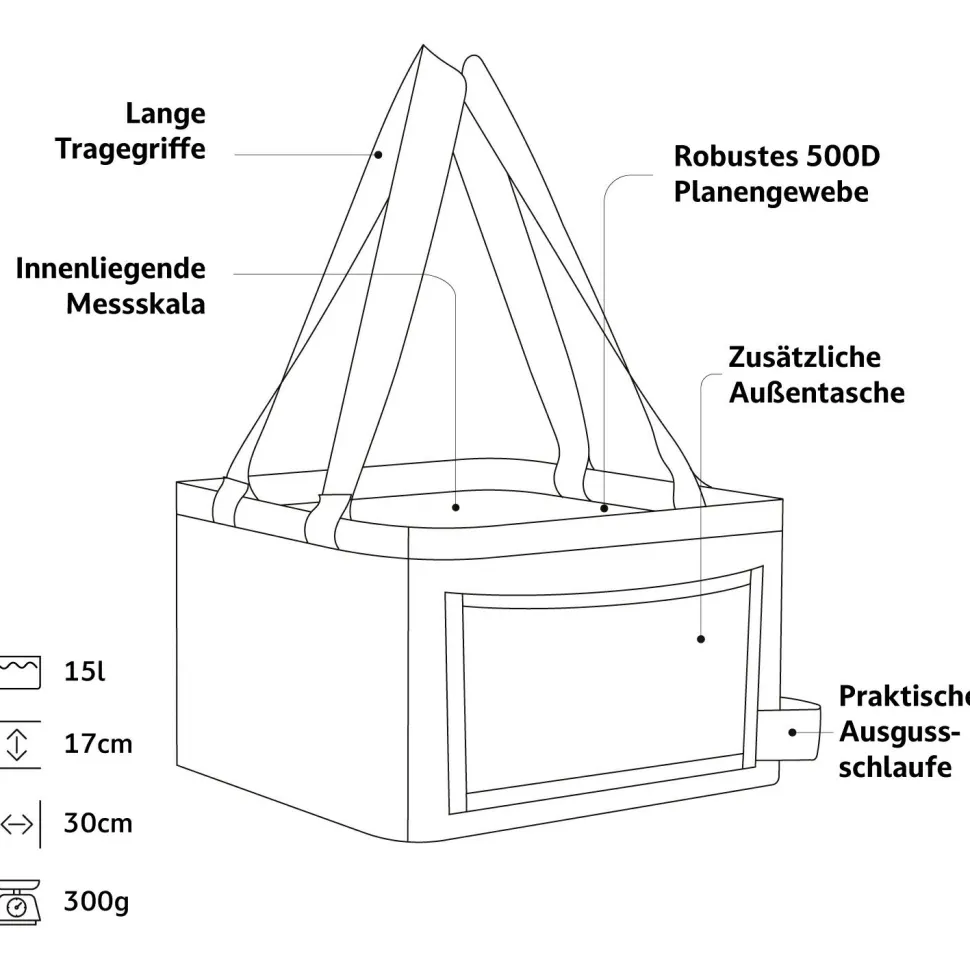 - Größen: 15 Liter, 20 Liter; mit Netzfach außen; Tragegriffe
