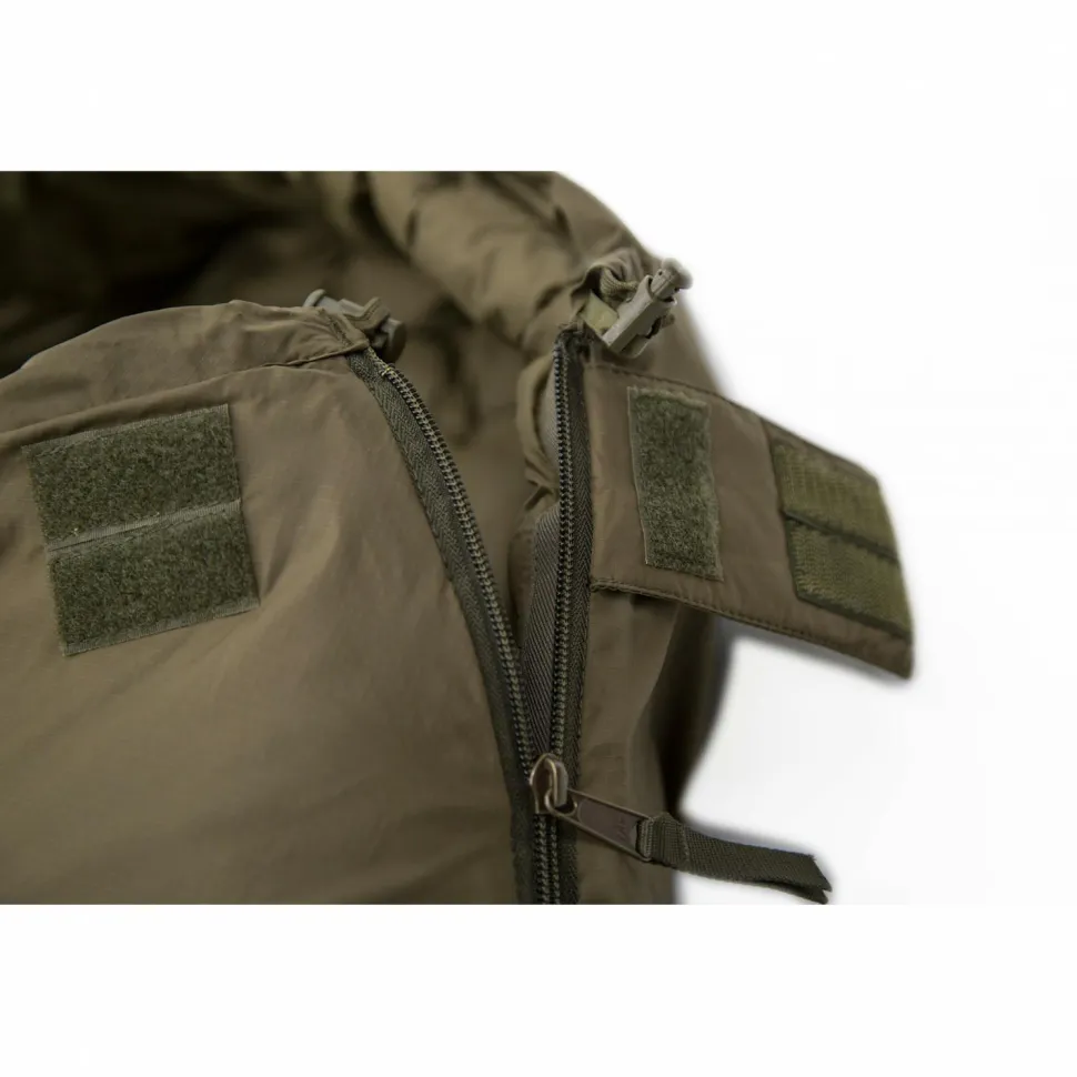 Ausgestattet ist der Mumienschlafsack Eagle von Carinthia mit einer einlagigen Synthetikfüllung aus hochwertigem G-Loft Material, das der Daune erstaunlich nahe kommt, was das Verhätmis zwischen Gewicht und Wärmeleistung betrifft. Diese Hightech-Füllung ist beim Eagle ebenfalls mit einer Technologie namens Thermoflect ausgerüstet. Dabei wird die wärmende Füllung mit Aluminium bedampft, sodass die Körperwärme zusätzlich reflektiert wird, ohne jedoch die Atmungsaktivität einzuschränken.