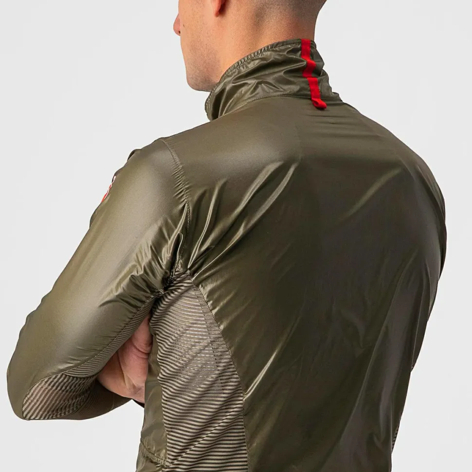 Enganliegende Windjacke mit Mesh-Einsätzen – die Aria Shell Jacket von Castelli vereint extrem geringes Gewicht mit besten Eigenschaften. Das ultraleichte Gewebe ist winddicht und extrem komprimierbar. Dadurch findet die Jacke in jeder Rückentasche ihren Platz. Sie ist somit immer dabei und schützt an kühlen Tagen vor kaltem Fahrtwind. Durch den durchgehenden Frontreißverschluss von YKK kann die Jacke einfach an gezogen werden. Zudem kann durch die Stellung des Reißverschlusses die Belüftung eingestellt werden.