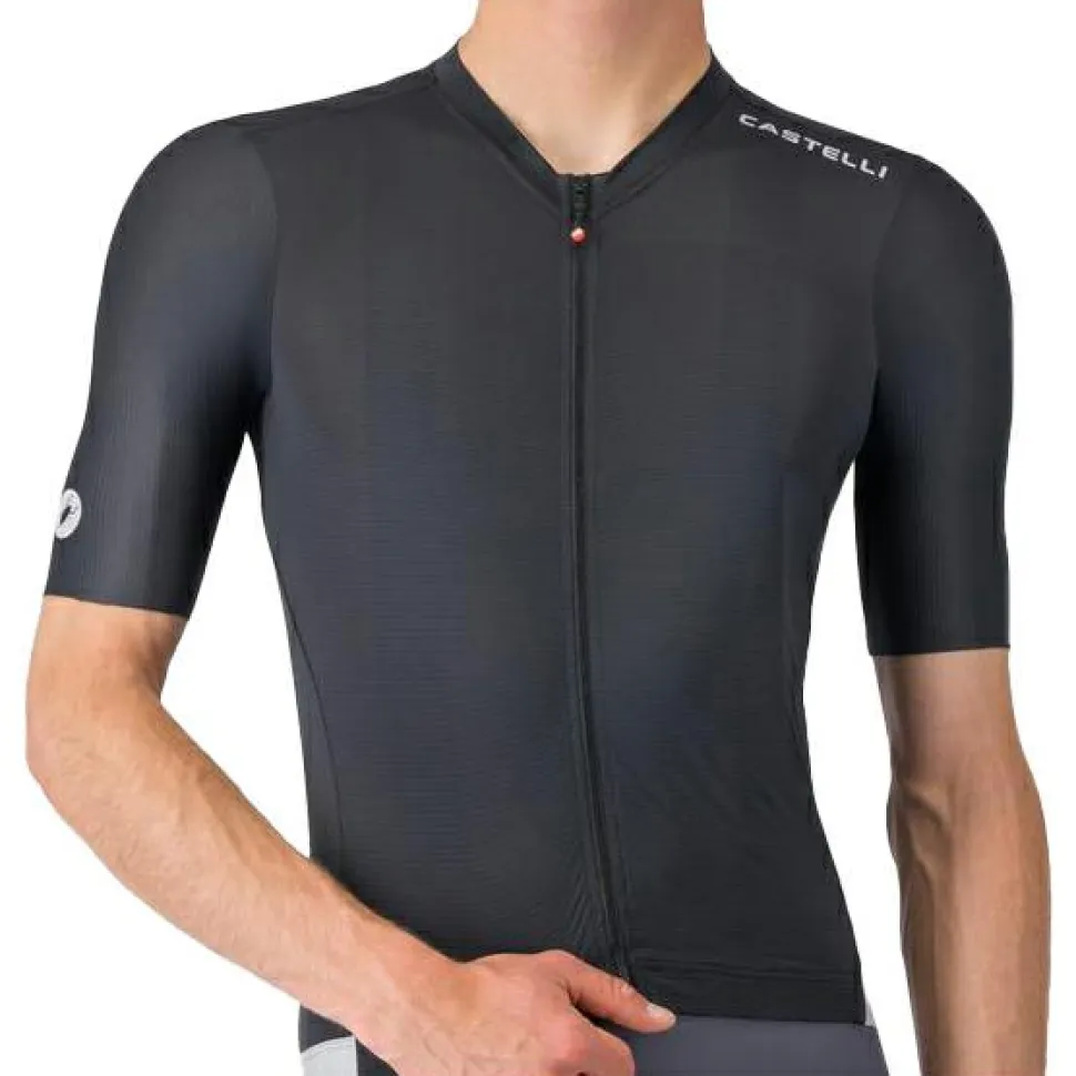 Das Castelli-eigene Air O Stretch-Material sorgt für Atmungsaktivität, Komfort und eine Passform, die sich Deinem Körper optimal anpasst. Die Stoffe sind so gewählt, dass sie sowohl für Belüftung als auch für aerodynamische Effizienz sorgen. Ärmel mit rohem Schnitt bieten Dir ein druckfreies Tragegefühl, selbst bei langen Fahrten.
