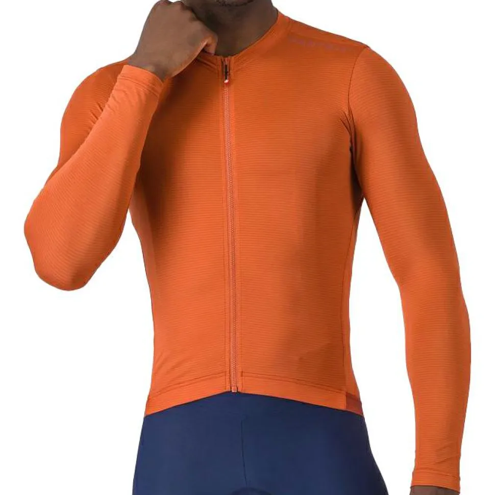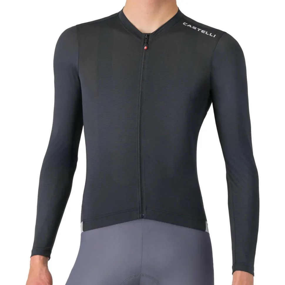 Das Castelli-eigene Air_O Stretch-Material sorgt für Atmungsaktivität, Komfort und eine Passform, die sich Deinem Körper optimal anpasst. Die Stoffe sind so gewählt, dass sie sowohl für Belüftung als auch für aerodynamische Effizienz sorgen. Ärmel mit rohem Schnitt bieten Dir ein druckfreies Tragegefühl, selbst bei langen Fahrten.