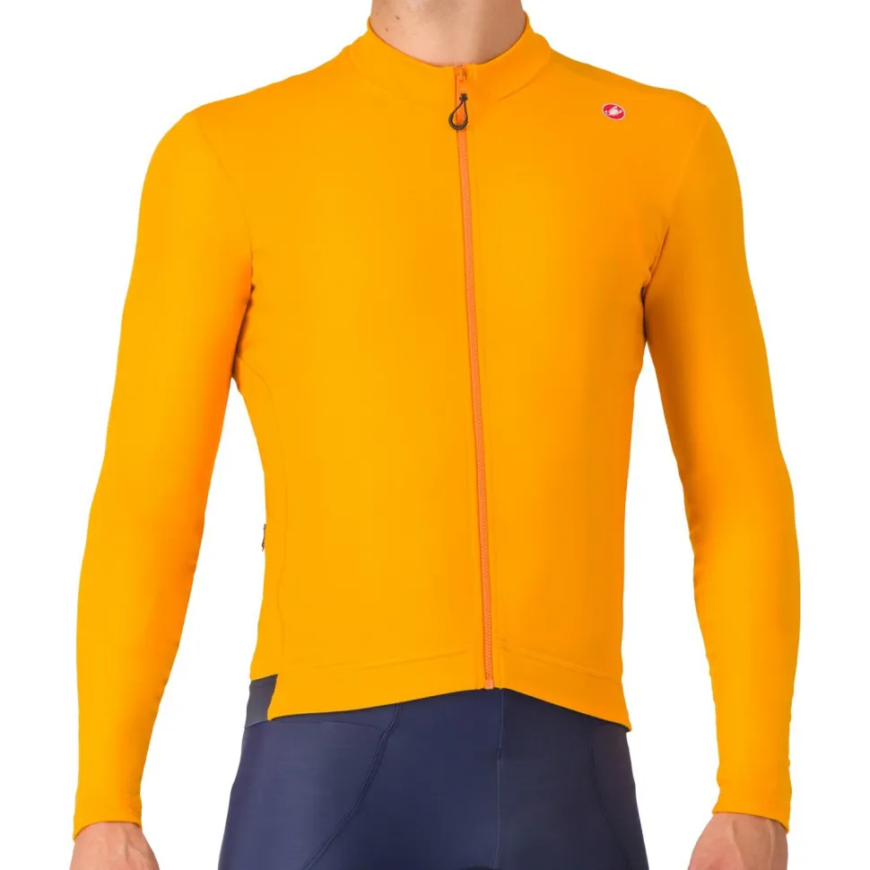 Das Espresso Thermal Jersey von Castelli ist Dein neues Must-Have für kühle Tage! Warm, weich und komfortabel – genau das, was ein gutes Thermotrikot für die kalte Jahreszeit ausmacht. Der luxuriös weiche Stoff mit Fleece-Futter schmiegt sich angenehm an Deine Haut und hält Dich schön warm, während der Stretch-Anteil für einen perfekten Sitz und optimale Bewegungsfreiheit sorgt. Mit drei Taschen auf der Rückseite und einer zusätzlichen Sicherheitstasche mit Reißverschluss hast Du ausreichend Platz für alles, was Du während der Fahrt benötigst. Der durchgehende YKK® Vislon®-Reißverschluss mit leichtgängigem Schieber sorgt für müheloses An- und Ausziehen. Der elastische Gummizug mit Silikon an der Taille garantiert, dass das Trikot an Ort und Stelle bleibt, egal, wie aktiv Du auf dem Rad bist. Reflektierende Details erhöhen Deine Sichtbarkeit und damit Sicherheit. Erlebe die perfekte Kombination aus Funktionalität und Stil – das Espresso Thermal Jersey wird schnell zu Deinem neuen Lieblings-Langarmtrikot!