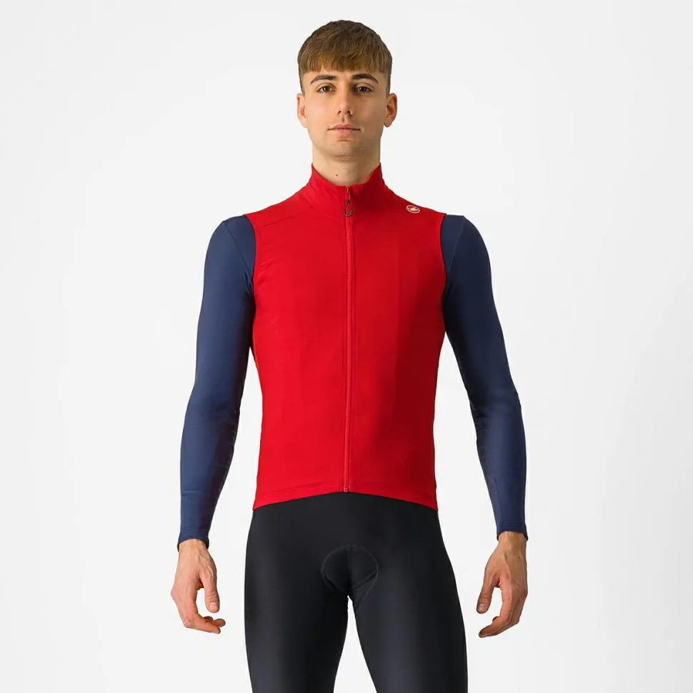 Die Espresso Vest von Castelli passt perfekt zu den anderen Kleidungsstücken aus der „Espresso“-Kollektion des Herstellers.Aber sie sieht nicht nur toll aus, sondern bietet auch die Leistung, die Du erwartest: Das Stretch-Gewebe auf der Vorderseite hält den meisten Wind ab, lässt aber gerade genug durch, um Dich trocken zu halten. Am Rücken sitzt die Weste wie angegossen, ist aber trotzdem bequem. Drei Taschen für Stauraum finden sich hier auch, sodass Du schnellen Zugriff auf alles hast, was Du unterwegs brauchst. Der 2-Wege-Reißverschluss auf der Vorderseite lässt sich von oben und unten öffnen, wodurch sich die Temperatur besser regulieren lässt, und Du zudem leichter Zugriff auf die Taschen Deines Trikots hast. Der Gummizug in der Taille hält die Weste an Ort und Stelle, und die reflektierende Lasche auf dem Rücken sorgt für zusätzliche Sichtbarkeit. Die Weste lässt sich klein zusammenpacken und in einer Trikottasche verstauen, wenn sie nicht benötigt wird.