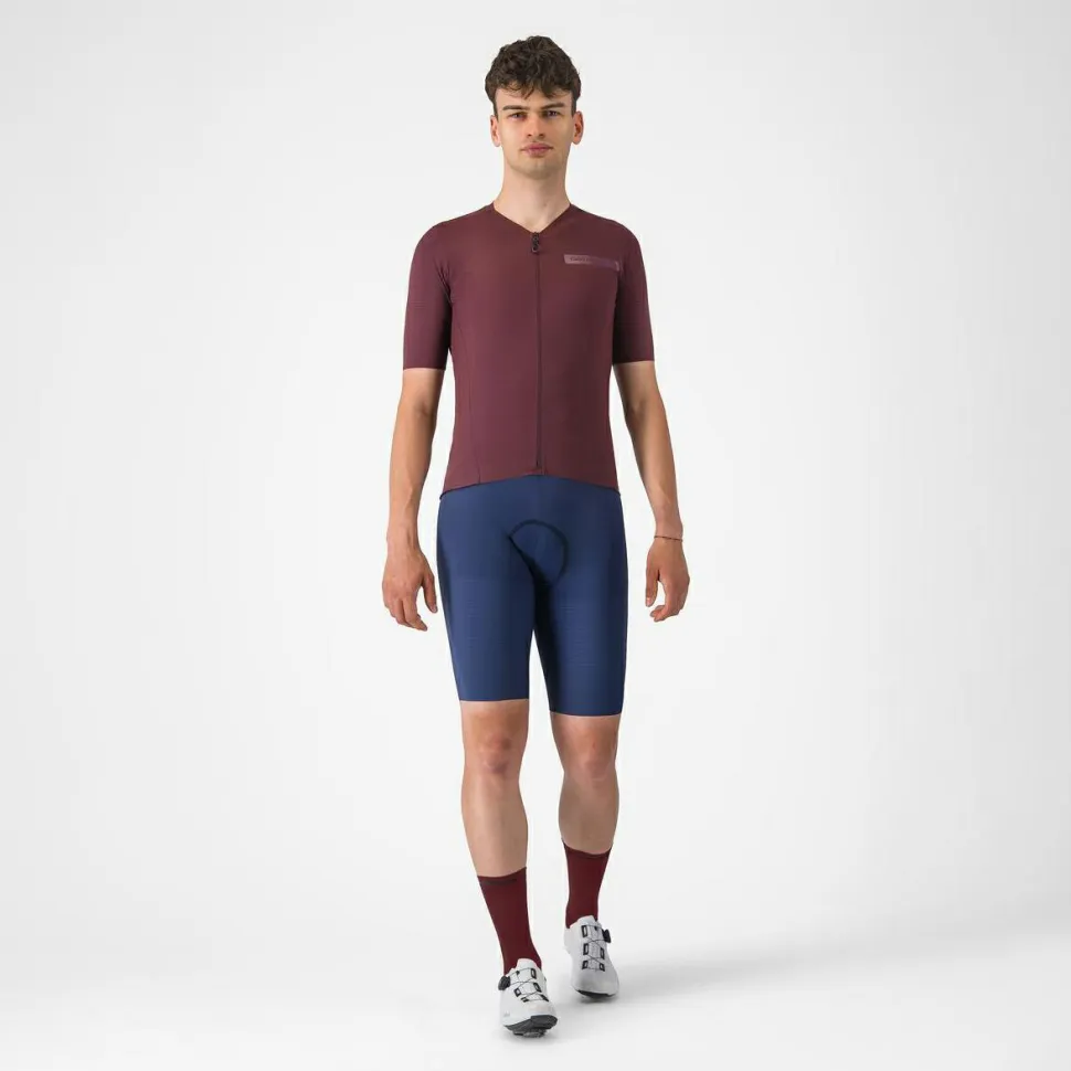 Das Premio Evo Jersey von Castelli ist ein aerodynamisches Radtrikot, das speziell für schnelle Biker entwickelt wurde. Mit einem durchgehenden Front-Reißverschluss bietet es Dir die Möglichkeit, die Belüftung und Temperatur während der Fahrt einfach zu regulieren. Die enganliegende Passform sorgt für eine aerodynamische Silhouette, die den Luftwiderstand minimiert und Deine Geschwindigkeit erhöht. Reflektierende Details erhöhen Deine Sichtbarkeit bei schlechten Lichtverhältnissen und verbessern somit Deine Sicherheit. Diese durchdachten Funktionen machen das Trikot zu einem unverzichtbaren Begleiter für jeden Radfahrer, der Wert auf Komfort und Leistung legt.