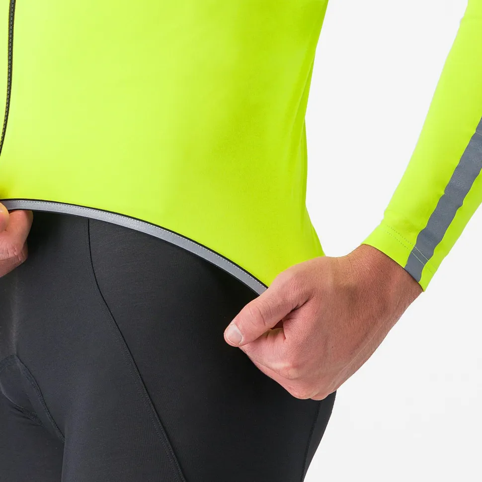 Für Fahrten bei Regen ist die Ultra Rain Cape von Castelli bestens geeignet. Diese sportliche Fahrradjacke begleitet Dich immer dann, wenn sich das Wetter nicht gerade von seiner besten Seite zeigt. Durch das wetterfeste und atmungsaktive Material hält Dich die Jacke angenehm trocken und kann auch im Inneren entstehende Feuchtigkeit schnell an die Umgebungsluft weiterleiten.