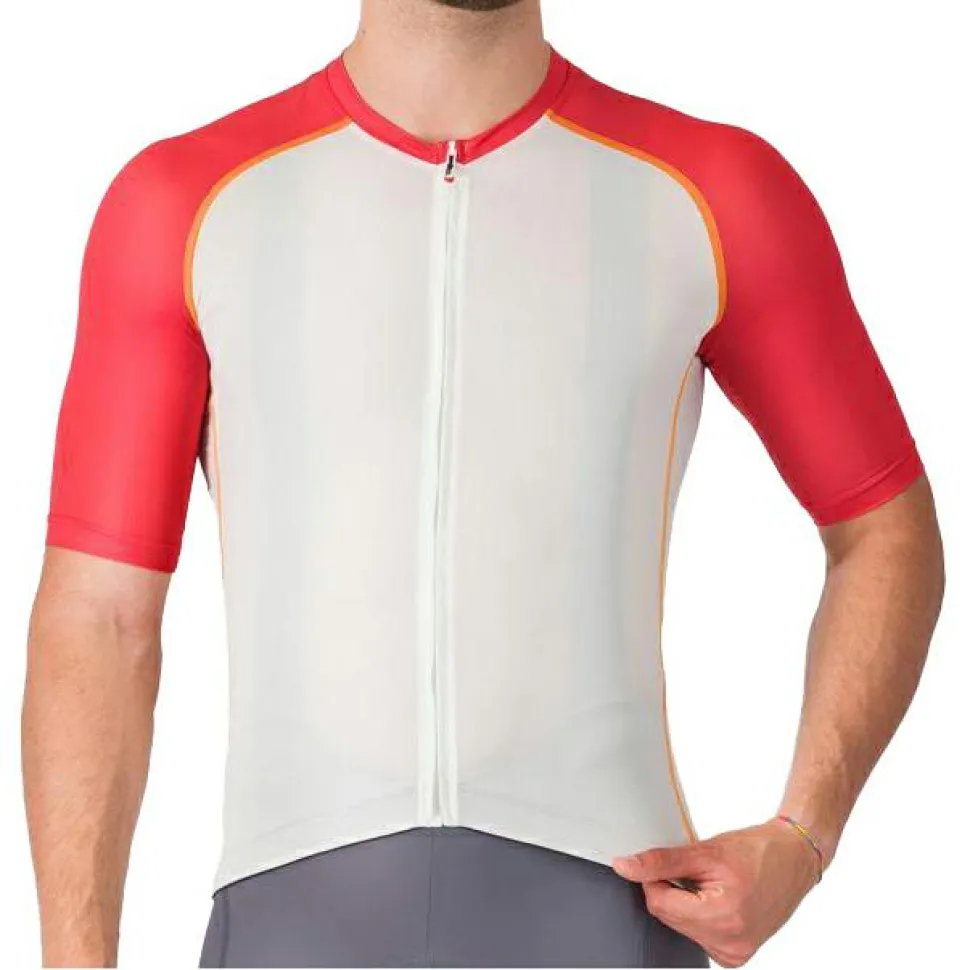 Das Strada-Mikromesh-Gewebe sorgt für hervorragende Belüftung und Feuchtigkeitsmanagement, damit Du auch bei intensiven Fahrten angenehm trocken bleibst. Die Ärmel schließen mit rohen Schnittkanten ab, was für ein leichtes, druckfreies Gefühl sorgt. Der durchgehende YKK Vislon-Reißverschluss ermöglicht einfaches An- und Ausziehen.