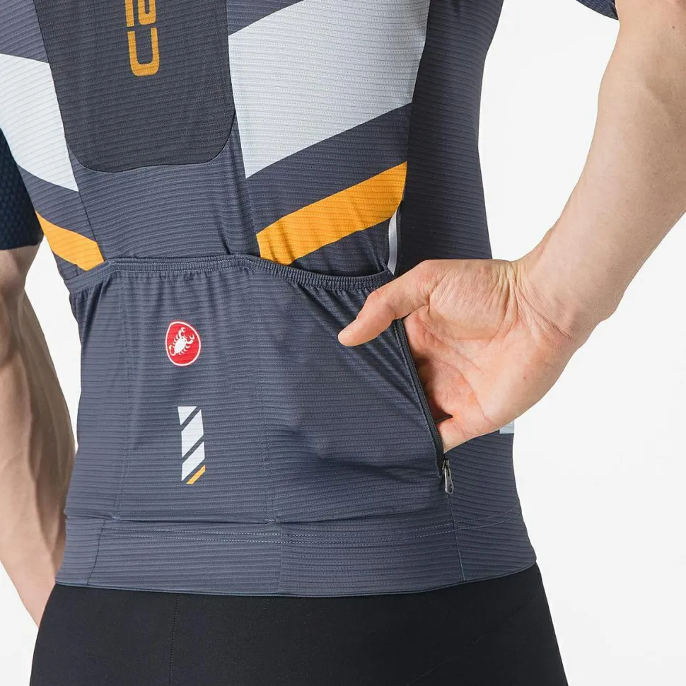 Mit durchdachten Taschenlösungen bietet das Unlimited Pro Jersey von Castelli hervorragende Funktionalität. Die 3 Rückentaschen und die RV-Sicherheitstasche ermöglichen es Dir, wichtige Gegenstände sicher zu verstauen. Zusätzlich bietet die Tasche für eine 1,5l-Trinkblase eine praktische Lösung für die Flüssigkeitszufuhr während der Fahrt. Diese funktionalen Merkmale sind ideal für Radfahrer, die auf langen Strecken unterwegs sind und schnellen Zugriff auf ihre Ausrüstung benötigen.
