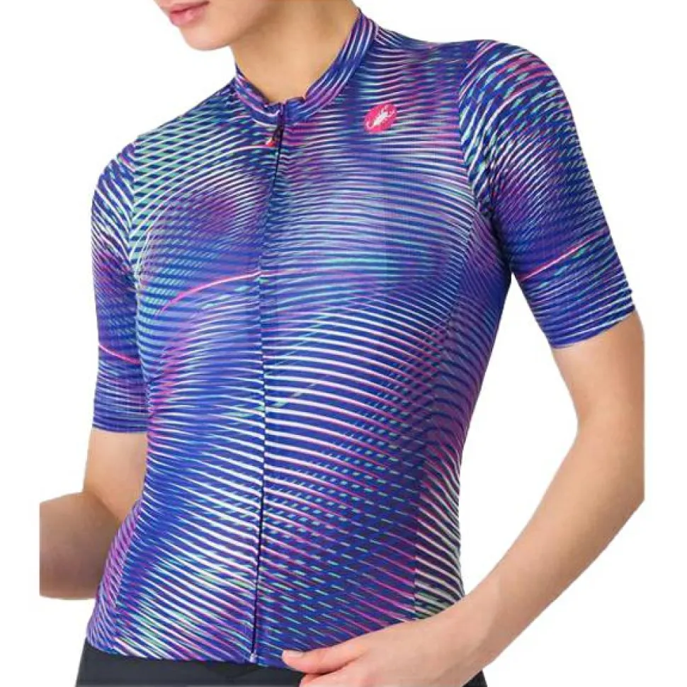 Die Castelli Women’s Cosmic Vortex Jersey steht für eine neue Ära des Designs – auffällig, funktional und gemacht für Deine besten Rides. Das Strada-Micromesh-Material bietet Dir eine perfekte Kombination aus Stretch und Belüftung, damit Du auch bei intensiven Touren angenehm trocken bleibst.