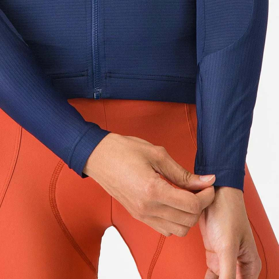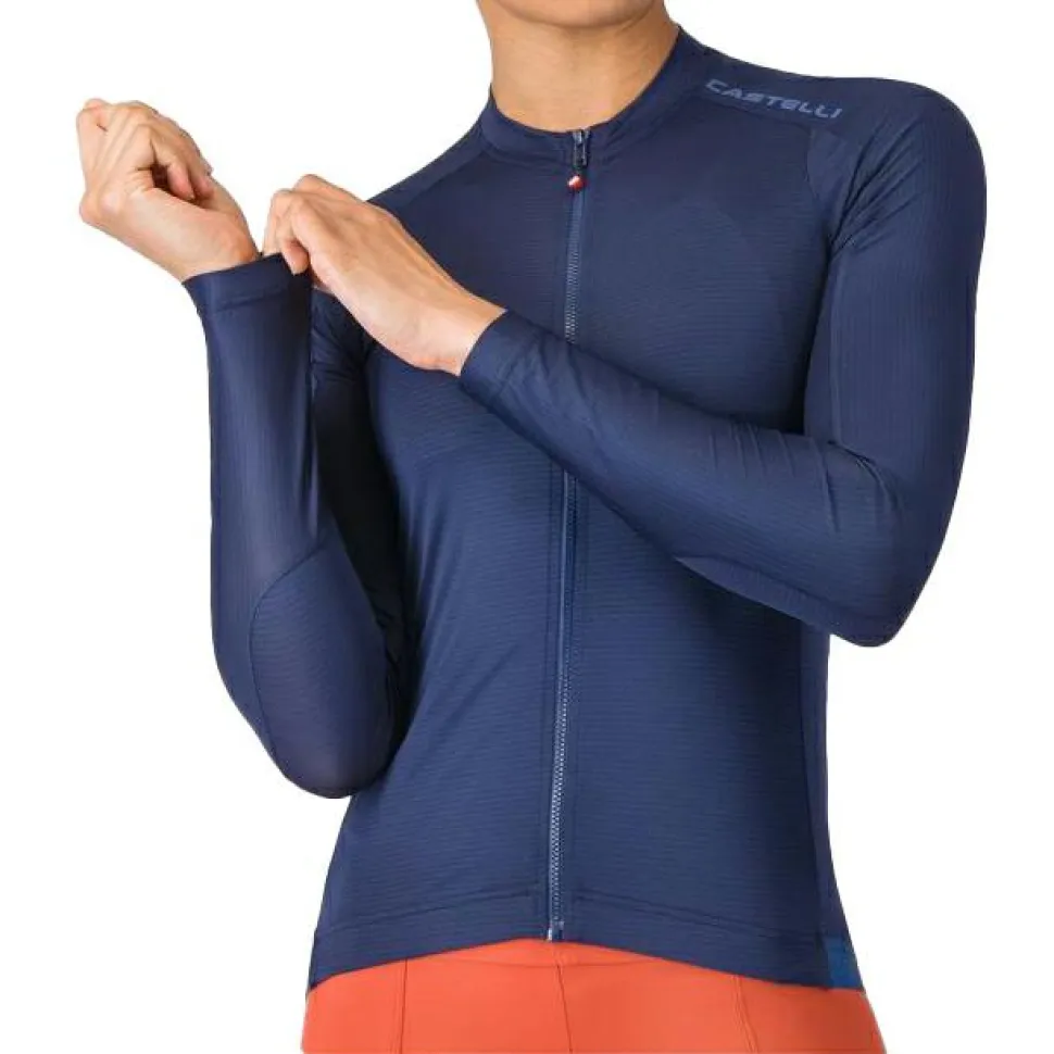 Das Castelli-eigene Air_O Stretch-Material sorgt für Atmungsaktivität, Komfort und eine Passform, die sich Deinem Körper optimal anpasst. Die Stoffe sind so gewählt, dass sie sowohl für Belüftung als auch für aerodynamische Effizienz sorgen. Ärmel mit rohem Schnitt bieten Dir ein druckfreies Tragegefühl, selbst bei langen Fahrten.