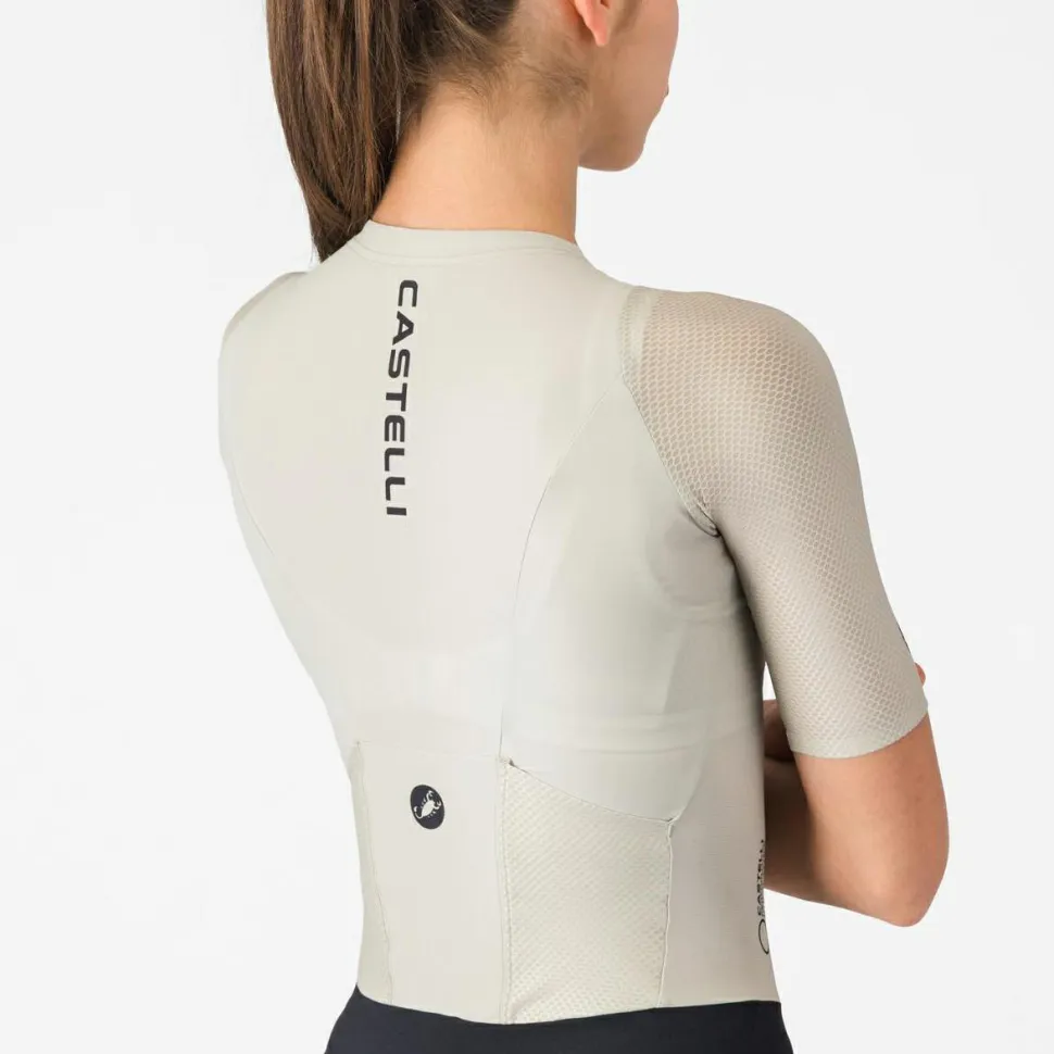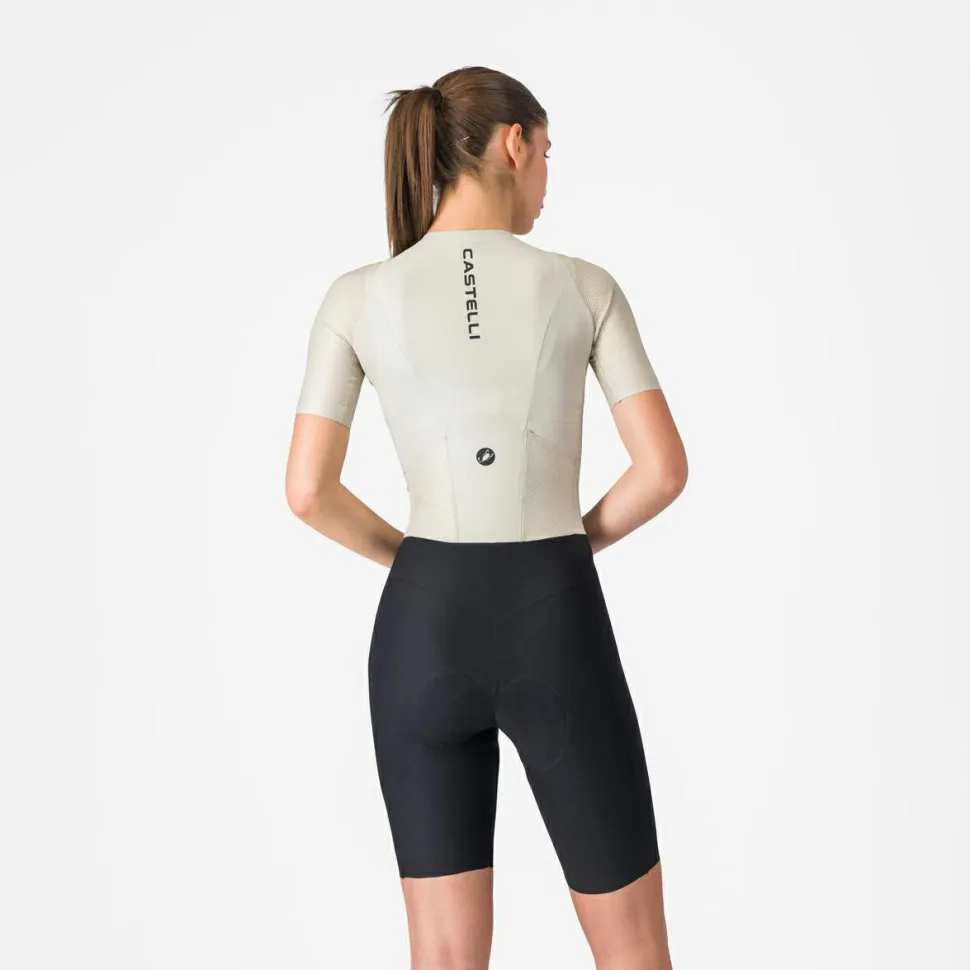 Die Shorts bestehen aus dem Castelli-eigenen Espresso Doppio Material, das für ein angenehmes Tragegefühl und optimale Elastizität sorgt. Das Progetto X2 Air Seamless Donna Sitzpolster bietet Dir ganztägigen Komfort und verbesserte Luftzirkulation. Kürzere Bein- und Ärmelabschlüsse sorgen für eine natürliche Passform, während der flache Kragen den Look abrundet.