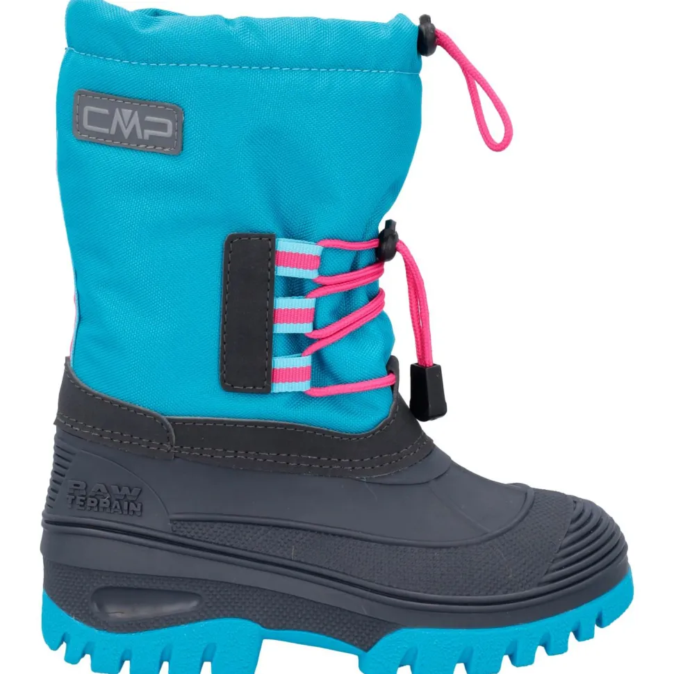 Mit ihrem hohen Schaft schützen die Kid’s Ahto Waterproof Snow Boots Winterschuhe von CMP optimal vor Nässe, Matsch und Schnee. Die Winterstiefel werden von einer leichten Schnellschnürung gehalten und sind am Schaft zusätzlich mit einem weiteren Kordelzug ausgestattet. So kann auch von oben kein Schnee in die Stiefel eindringen.